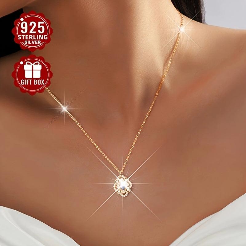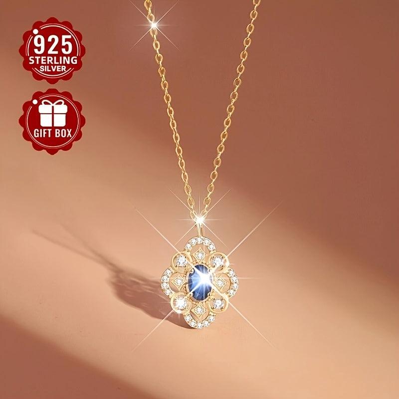This exquisite necklace features a lucky clover design with synthetic zirconia flower details, perfect for special occasions like banquets or dates. An elegant gift for mothers.
