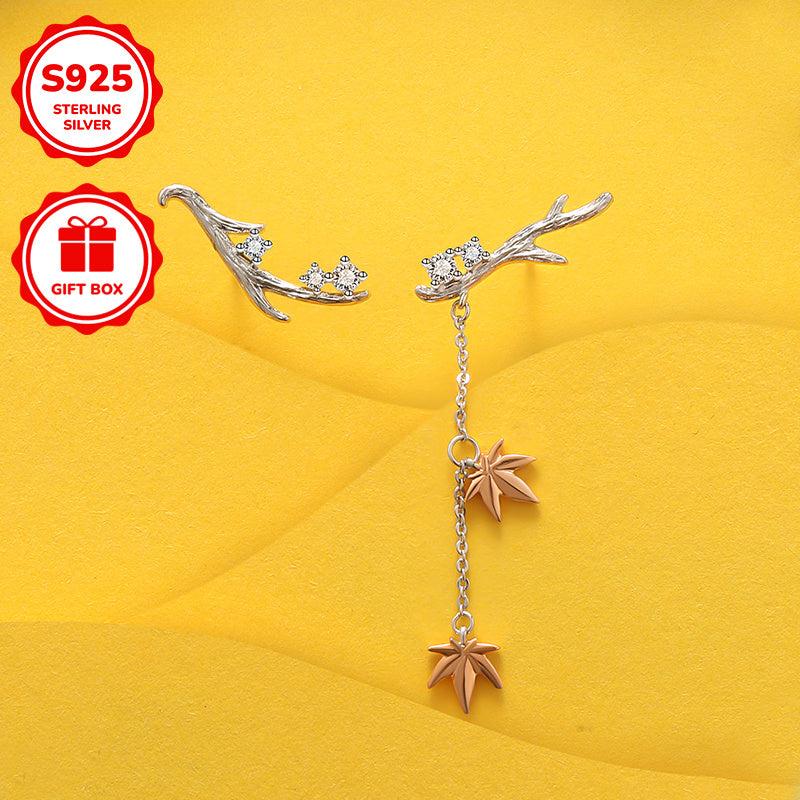 Add a touch of elegance with these dainty S925 sterling silver maple leaf dangle earrings. Perfect for everyday wear or special occasions.