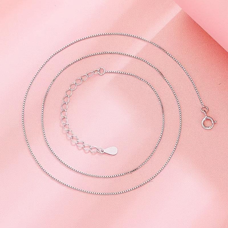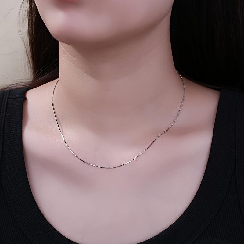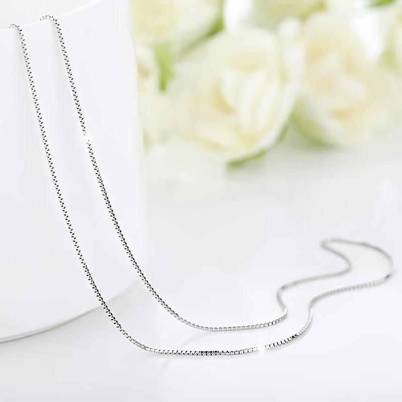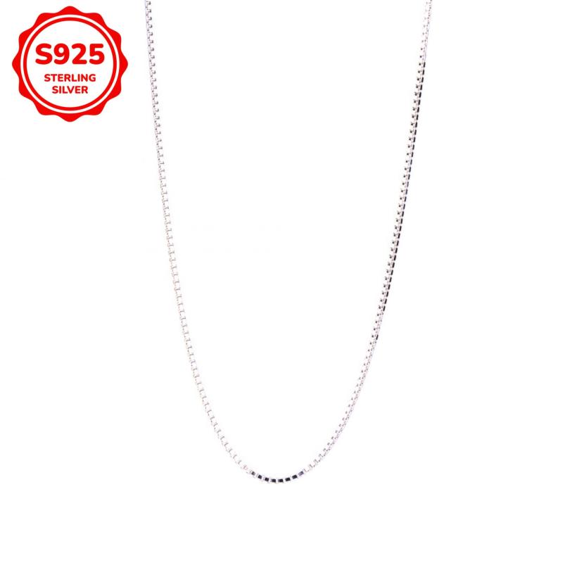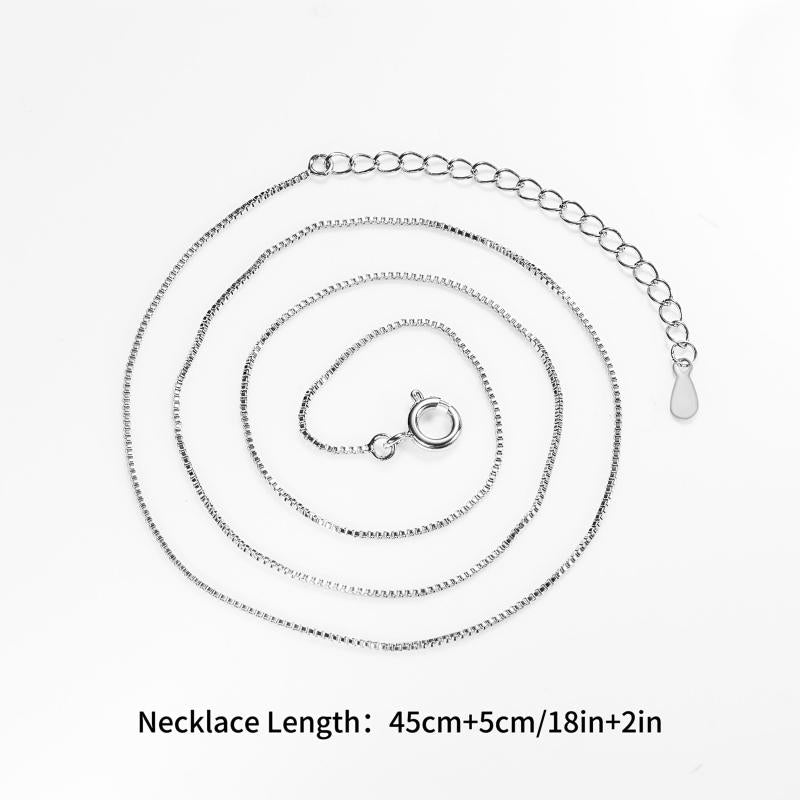 This women's necklace is made of S925 silver, weighing 2g. It features a box chain design that is versatile and suitable for casual attire. The necklace is hypoallergenic and compatible with various pendants.