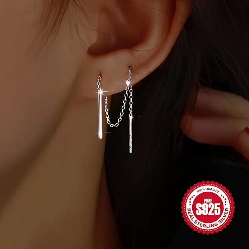 These elegant O chain earrings are made of S925 silver, perfect for women with sensitive skin. The light and low allergy design makes them comfortable to wear for extended periods.