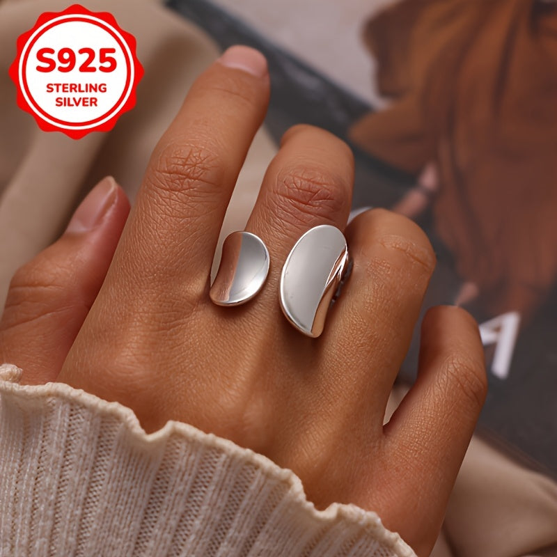 Elevate your style with this trendy S925 silver open ring featuring an irregular geometric design. The wide band adds a fashionable touch, weighing only 5g (0.176oz) for a lightweight feel.
