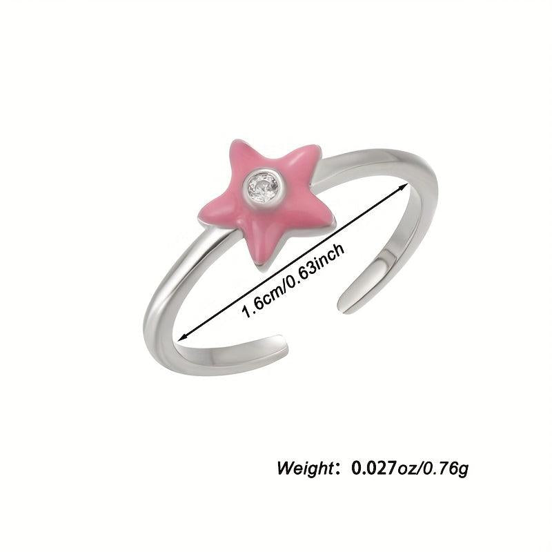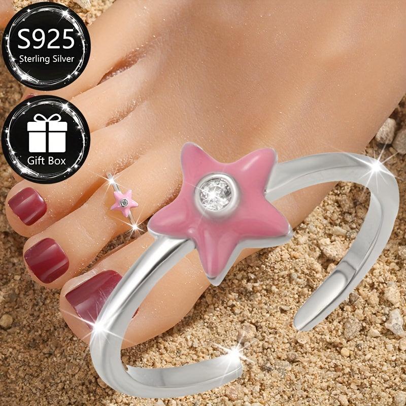 Add a touch of summer glam with this S925 sterling silver pink dripping five-pointed star open foot ring. Perfect for beach vacations, summer parties, and accessorizing your toes.