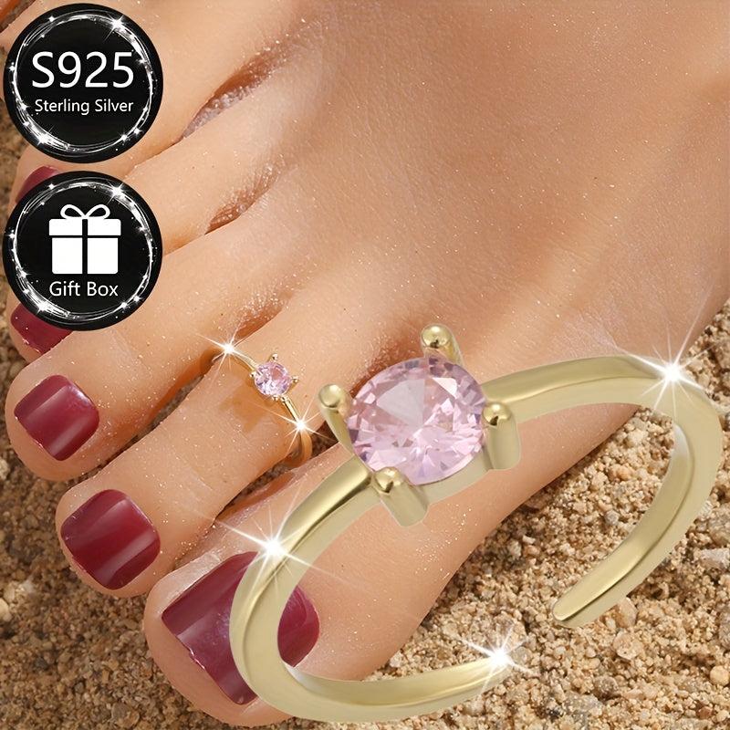This stunning S925 silver toe ring features a round pink Synthetic Zirconia in a four-claw setting, perfect for adding a touch of glamour to your beach vacation or party outfit.