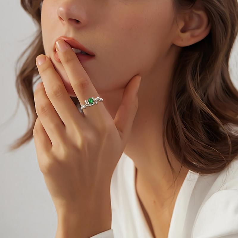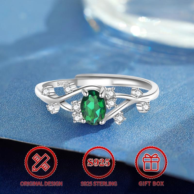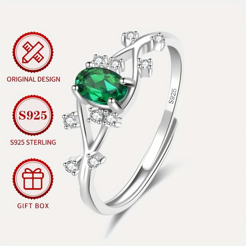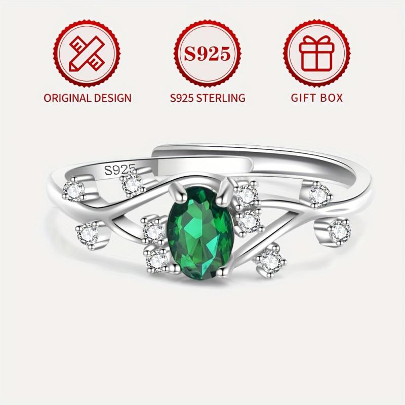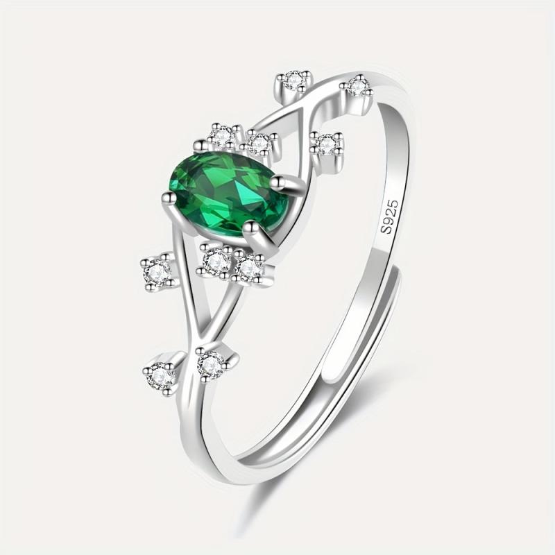 This stunning S925 silver ring features synthetic zircons and a vibrant green spinel, making it the perfect symbol of love and devotion.