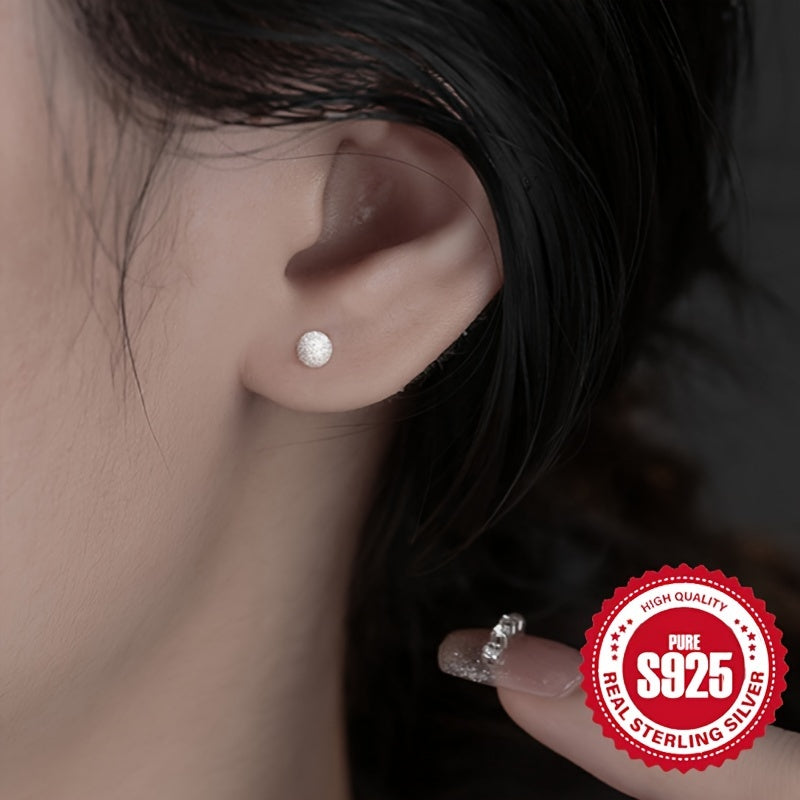 This pair of stud earrings are made of S925 silver, perfect for daily wear. The earrings are versatile and low allergy, suitable for sensitive skin. Each earring features a round bead design that adds a touch of elegance to any outfit.