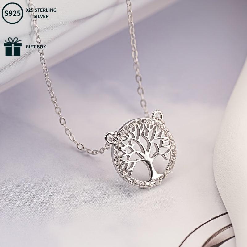 This S925 pure silvery tree of life necklace is suitable for daily wear and parties, making it fresh and versatile jewelry for women and girlfriends.