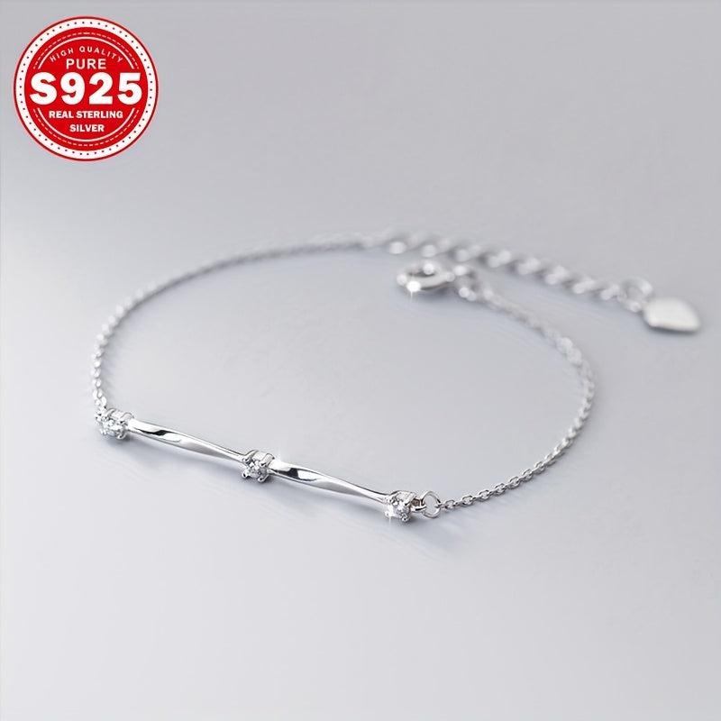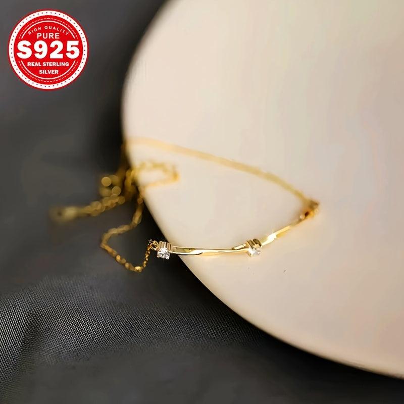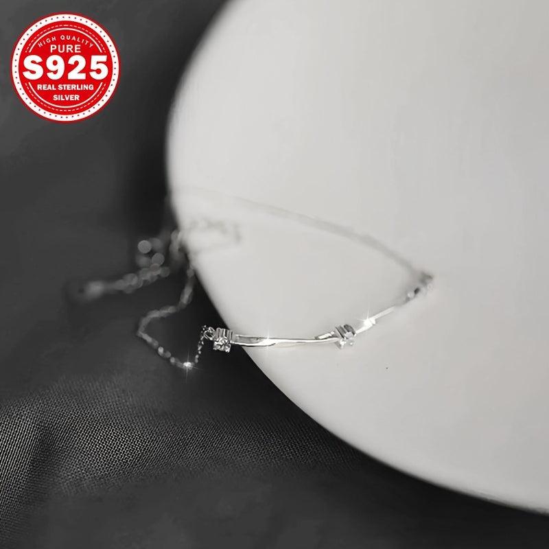 Elegant twisted line bracelet made of hypoallergenic S925 silver with artificial zirconia inlays. Perfect for daily stacking, a high-end accessory, and a great gift for women.