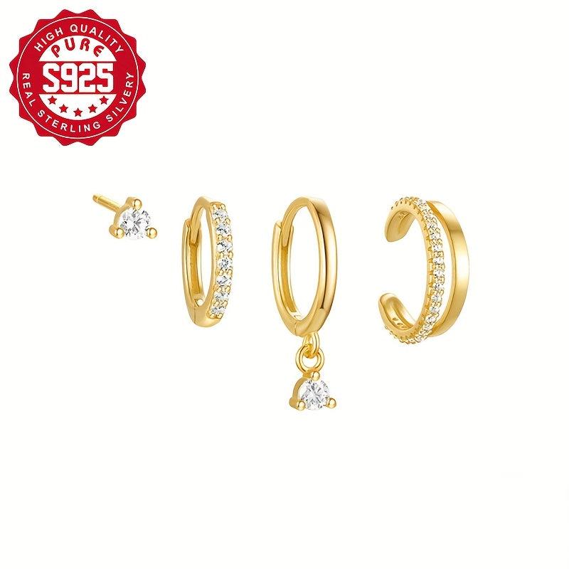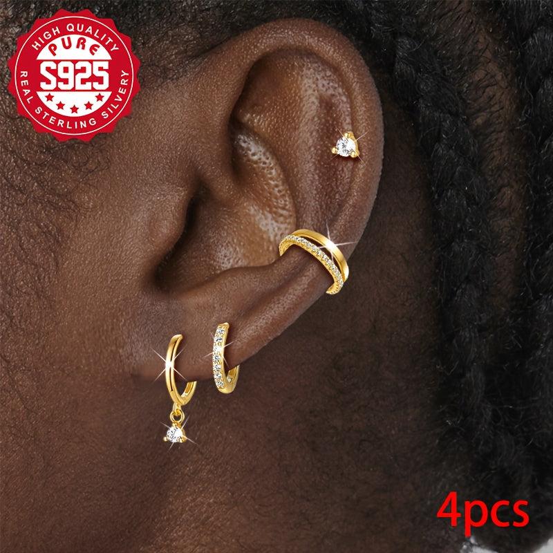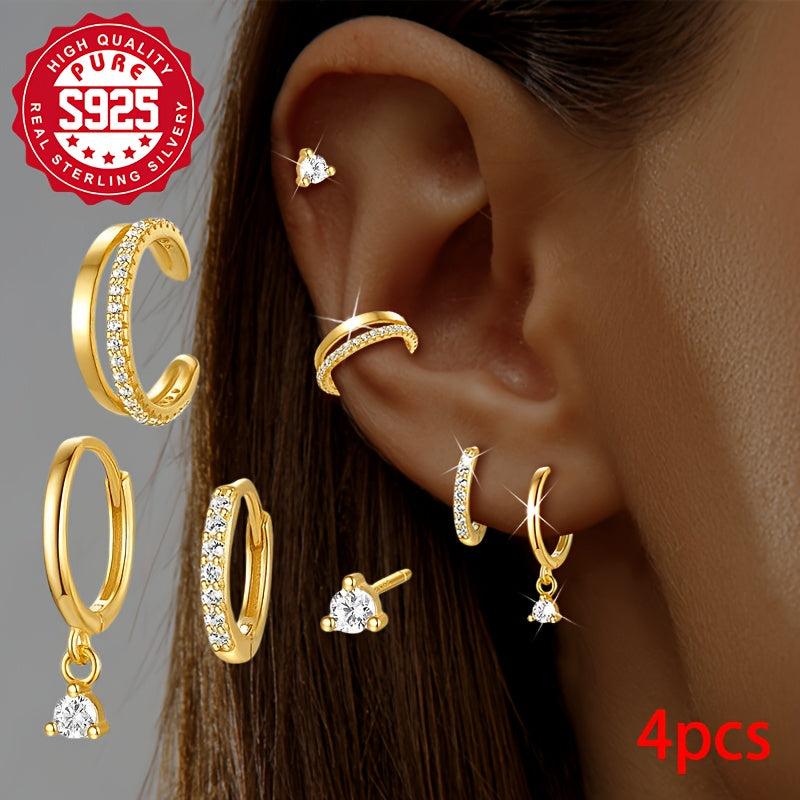 This set includes four stylish and versatile earrings made of hypoallergenic S925 silver, perfect for daily wear or special occasions like weddings and banquets.