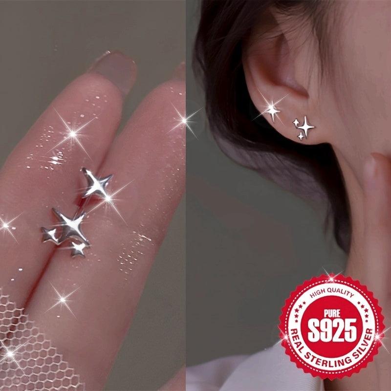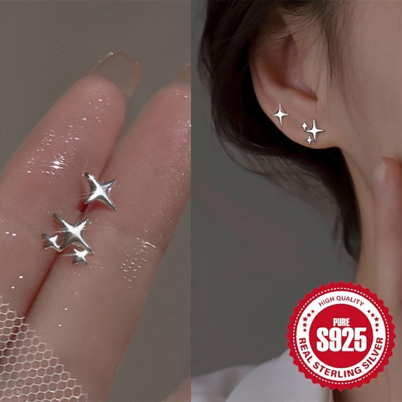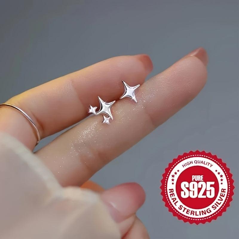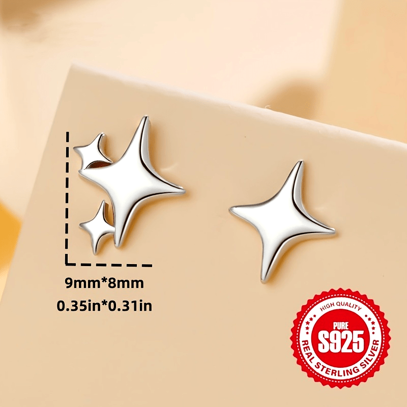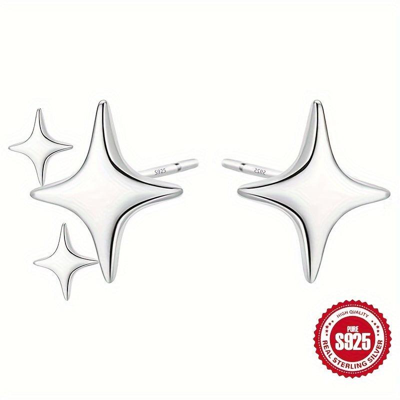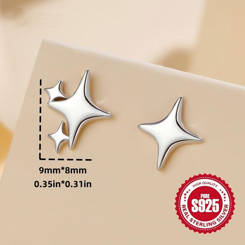 Stay stylish with these asymmetrical four pointed star earrings made of pure S925 silver. Perfect for daily wear in any occasion and suitable for those with allergies.