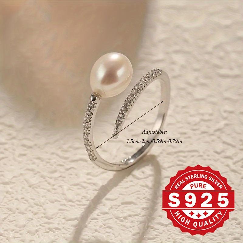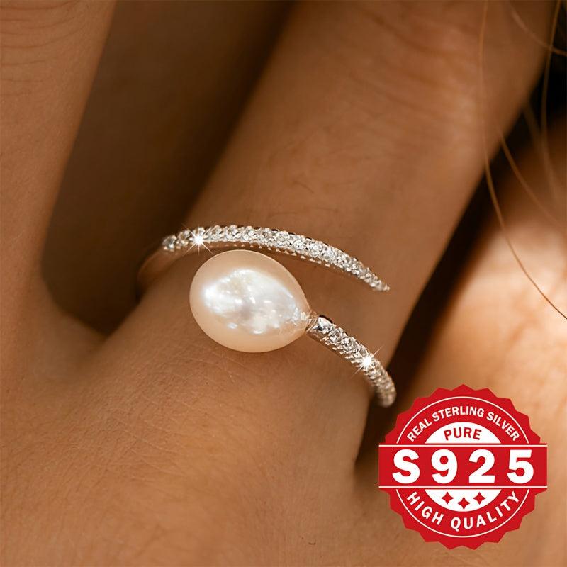 This freshwater pearl ring is set in S925 sterling silver with synthetic zirconia and freshwater pearls. The clash design is distinctive and perfect for any occasion.