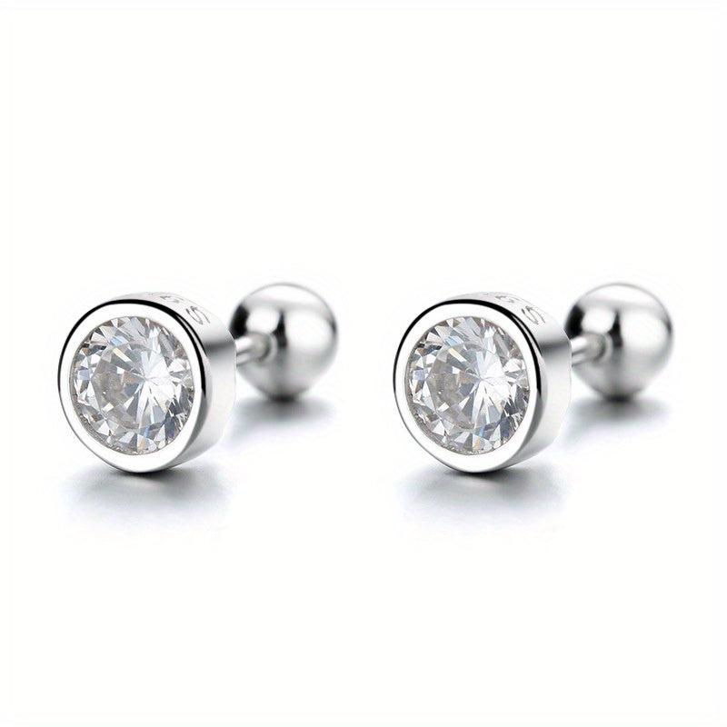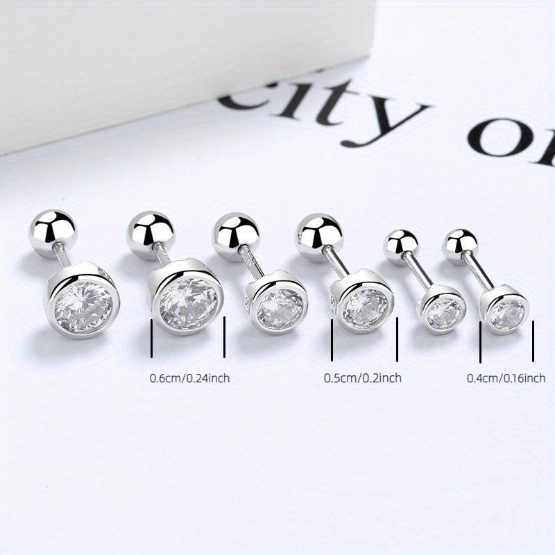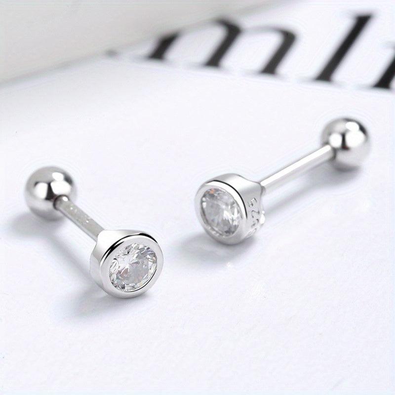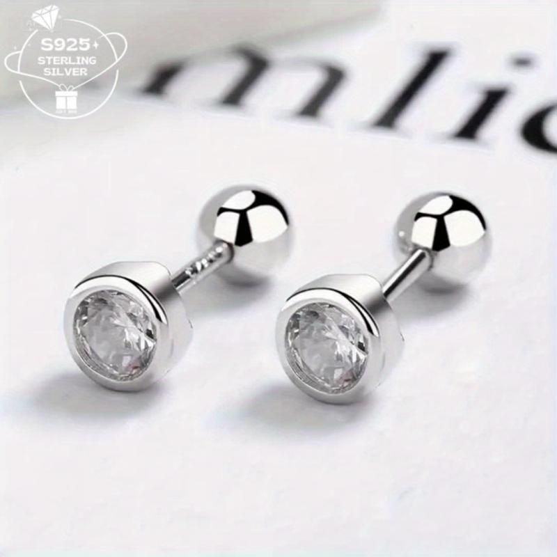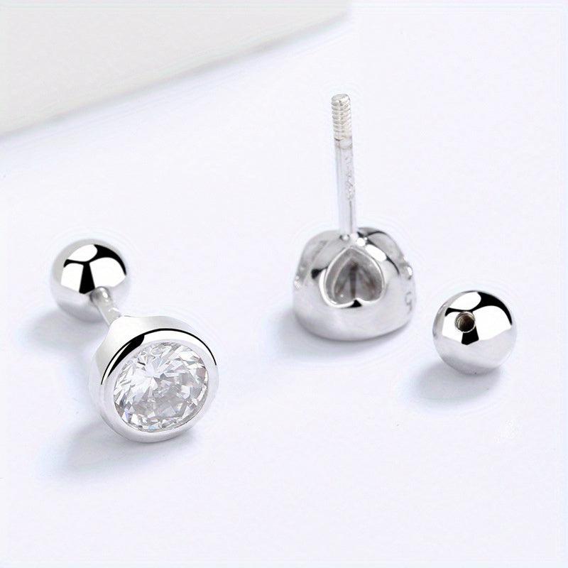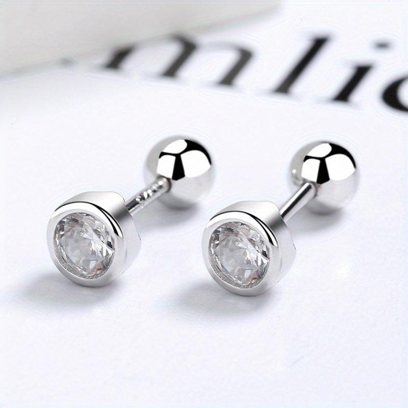 S925 Silver Zirconia Round Bead Earrings for Screw Ear Studs