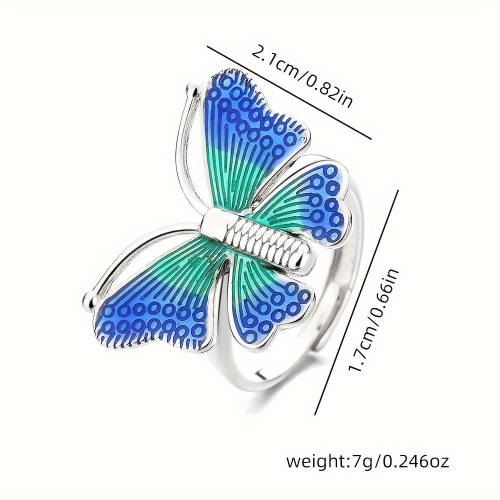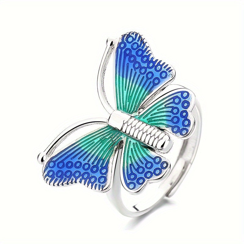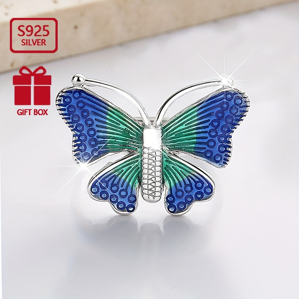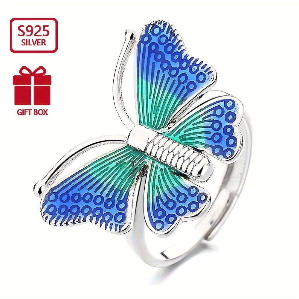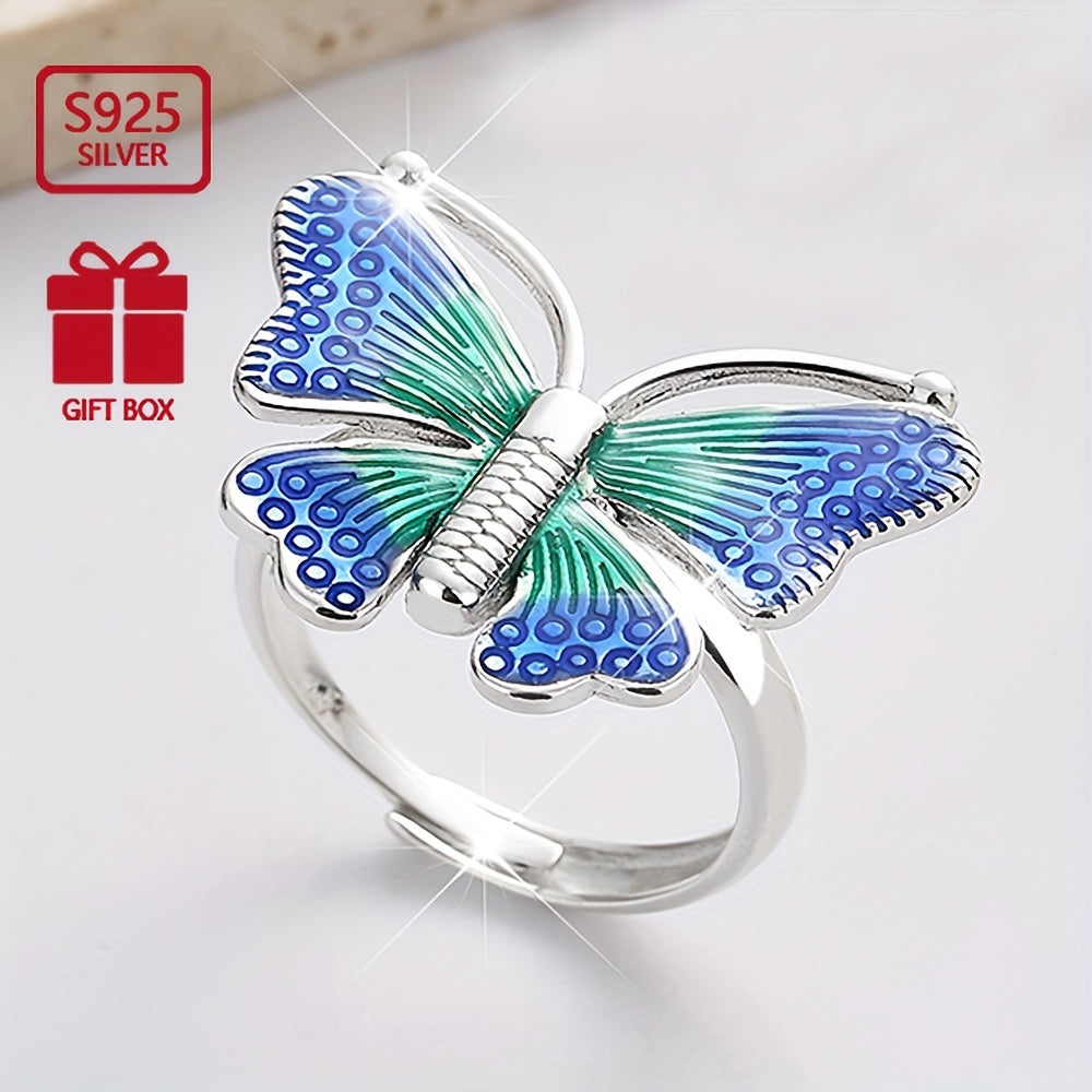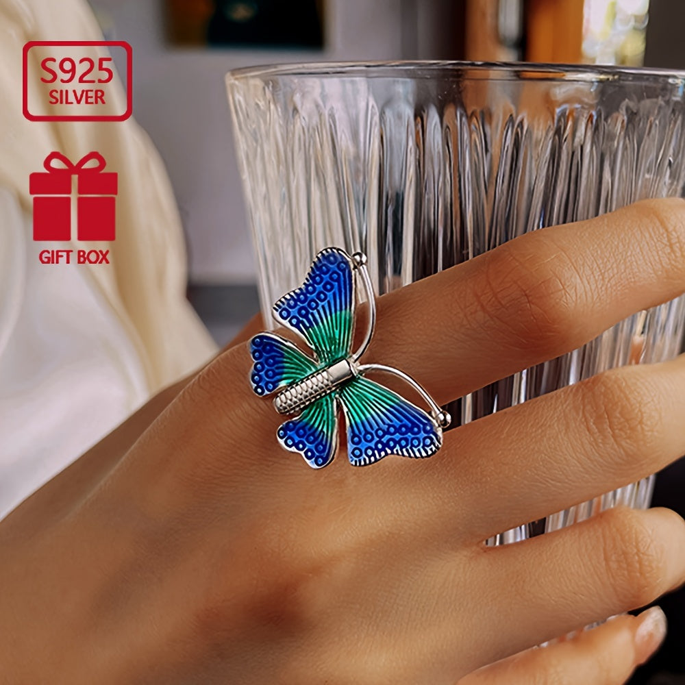 This exquisite S925 pure silvery ring features colorful dancing butterflies, perfect for banquets and gatherings. The ring is designed in an ethnic style with a unique drip glue finish.