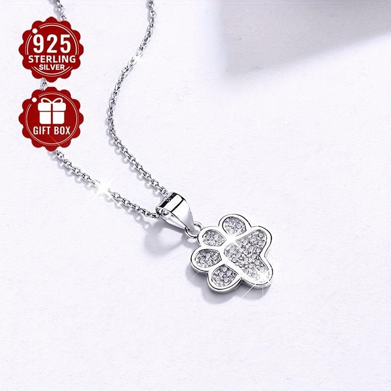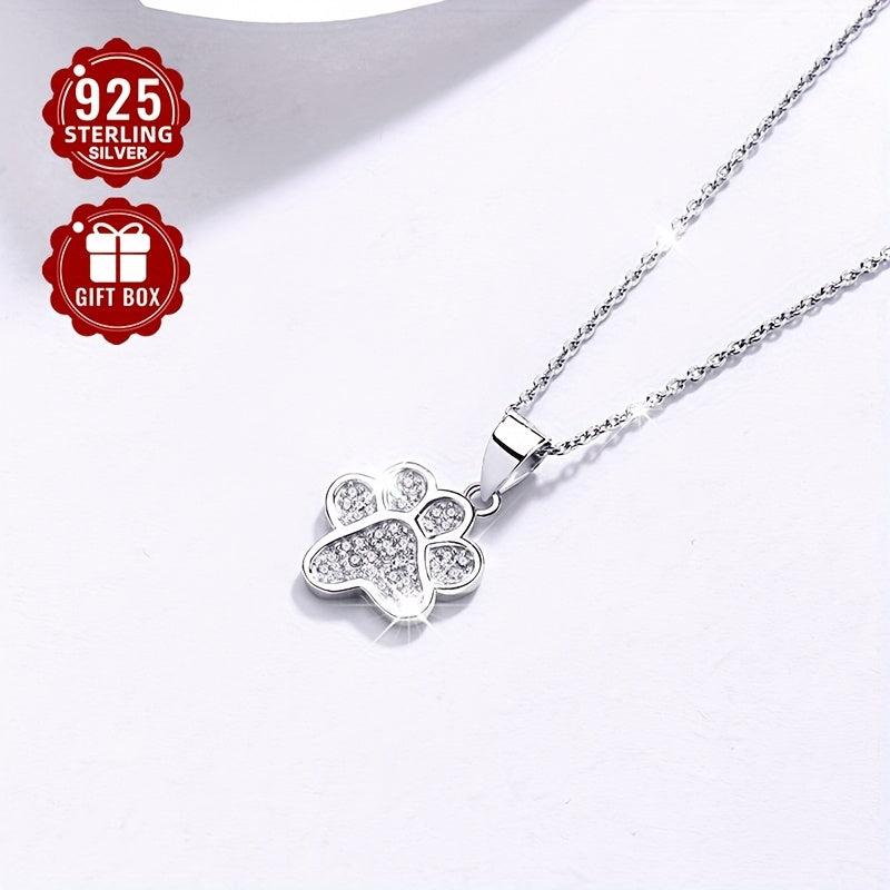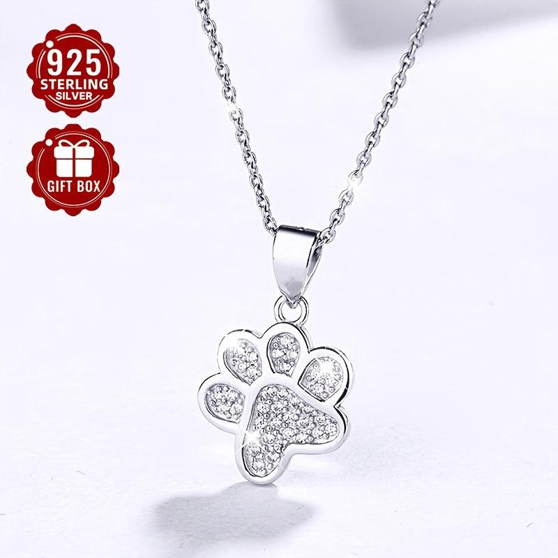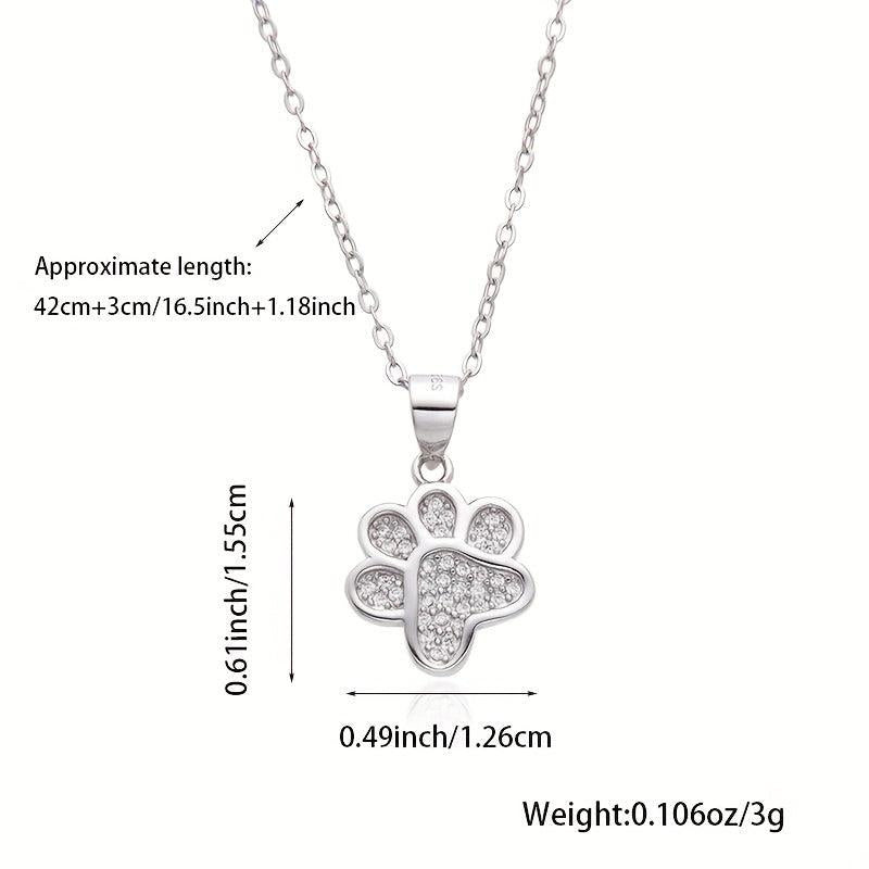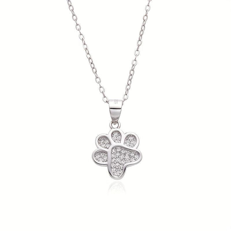 Beautiful pendant necklace featuring a pure silvery dog paw design with synthetic zirconia inlay. Perfect for daily wear.