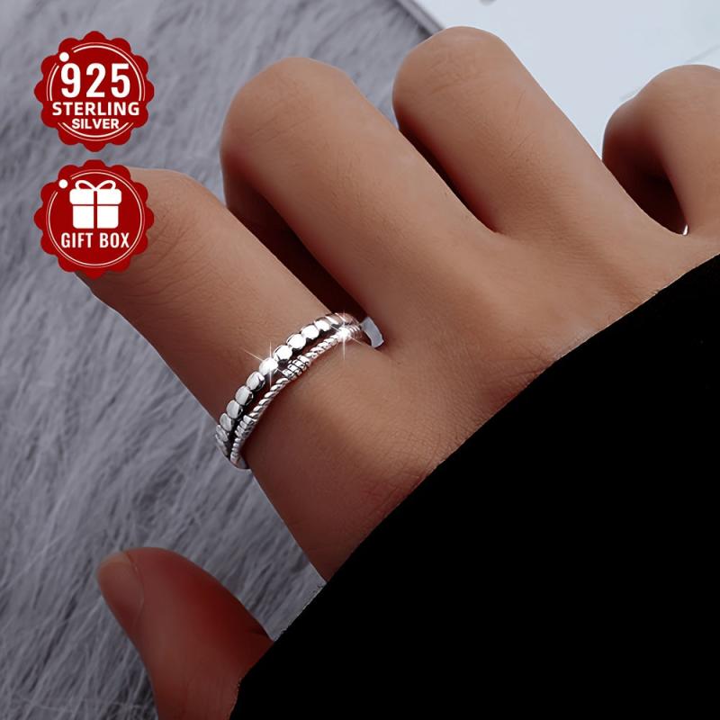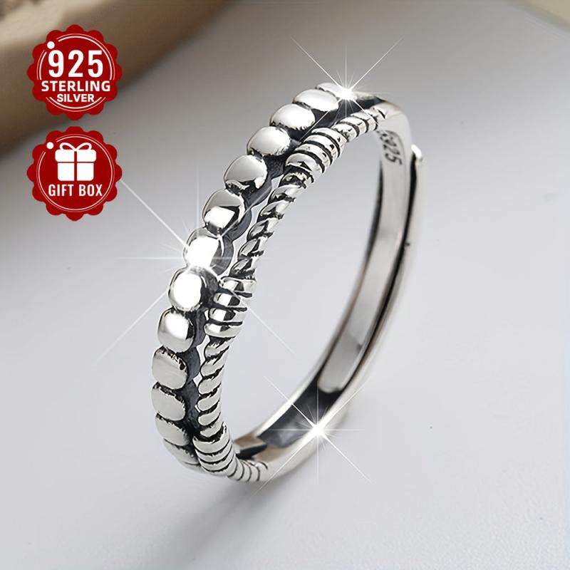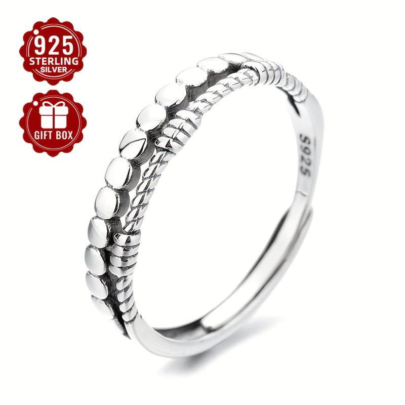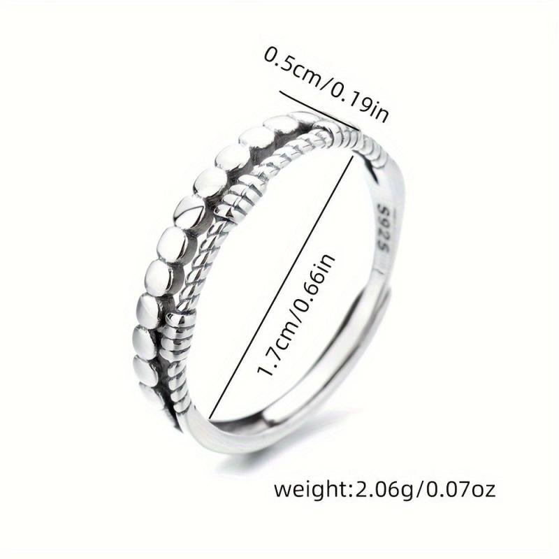 Enhance your style with this S925 pure silvery ring, featuring a retro geometric chain design. Perfect for daily wear, travel, and play, this unique women's index ring weighs 0.06g.