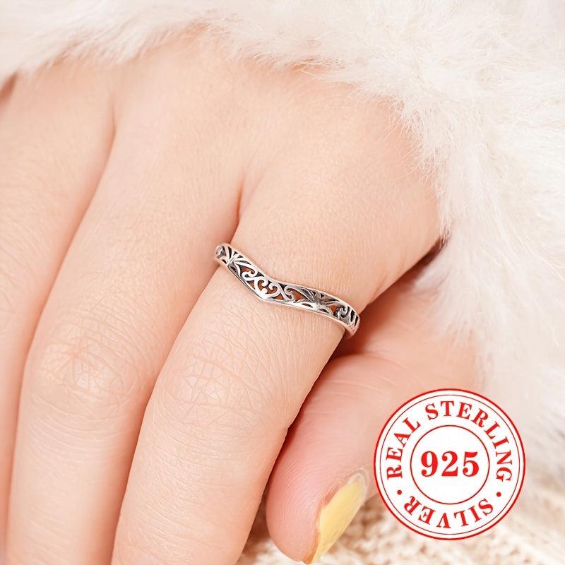 Add a stylish touch to your daily or vacation look with this S925 pure silvery ring featuring a retro hollow flower design and V shape.