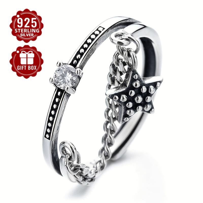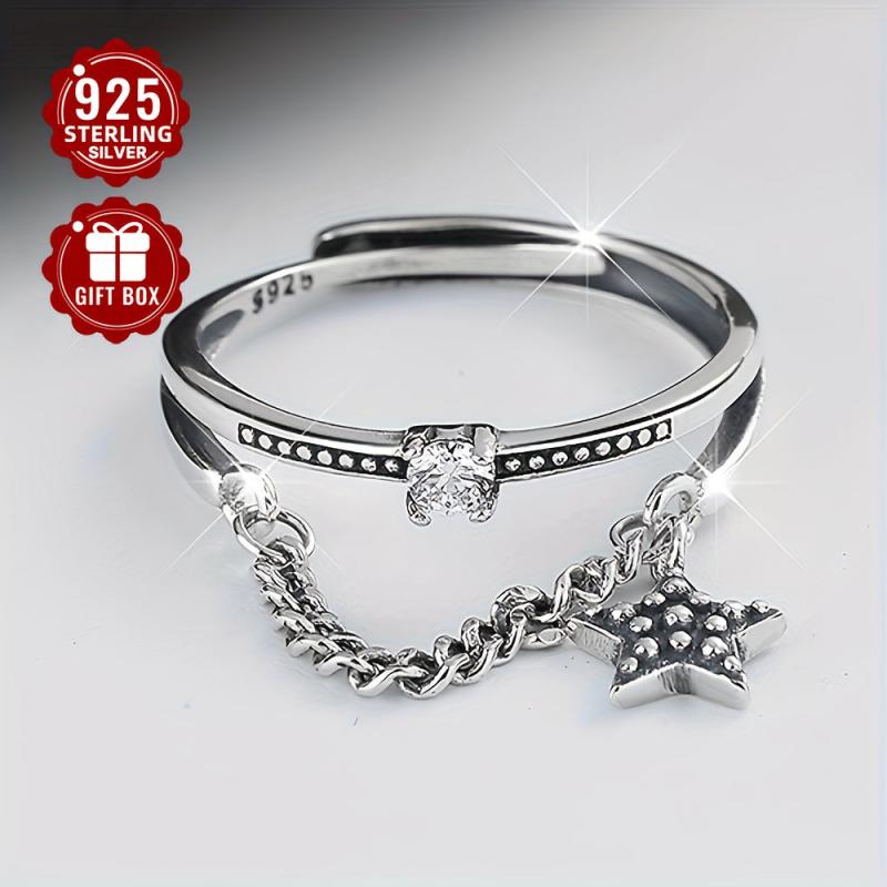 S925 Silvery Ring with Zirconia Star Chain for Women