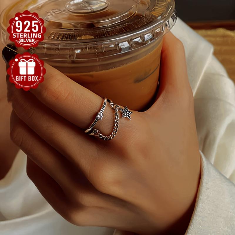 • Elegant S925 pure silvery ring with zirconia splicing star chain
