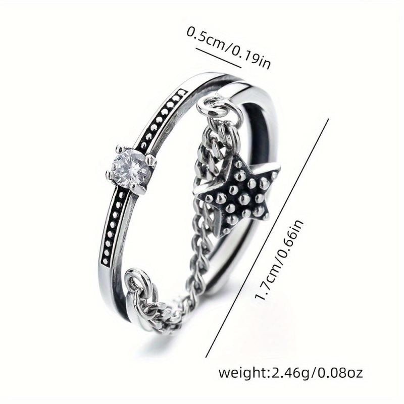 This elegant S925 pure silvery ring features a zirconia splicing star chain design, perfect for parties and concerts. Approx weight: 2.46g.