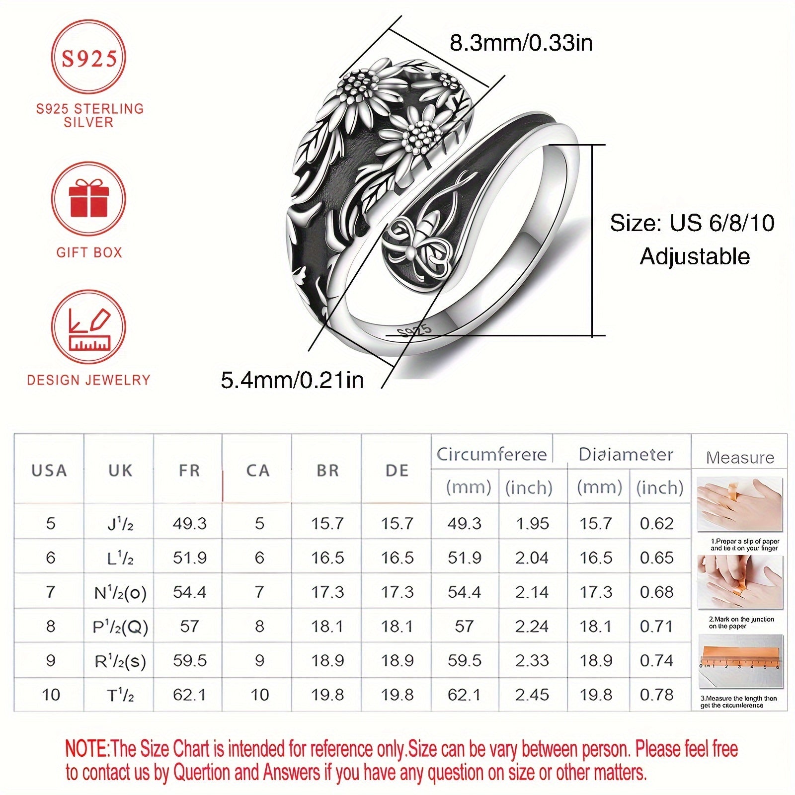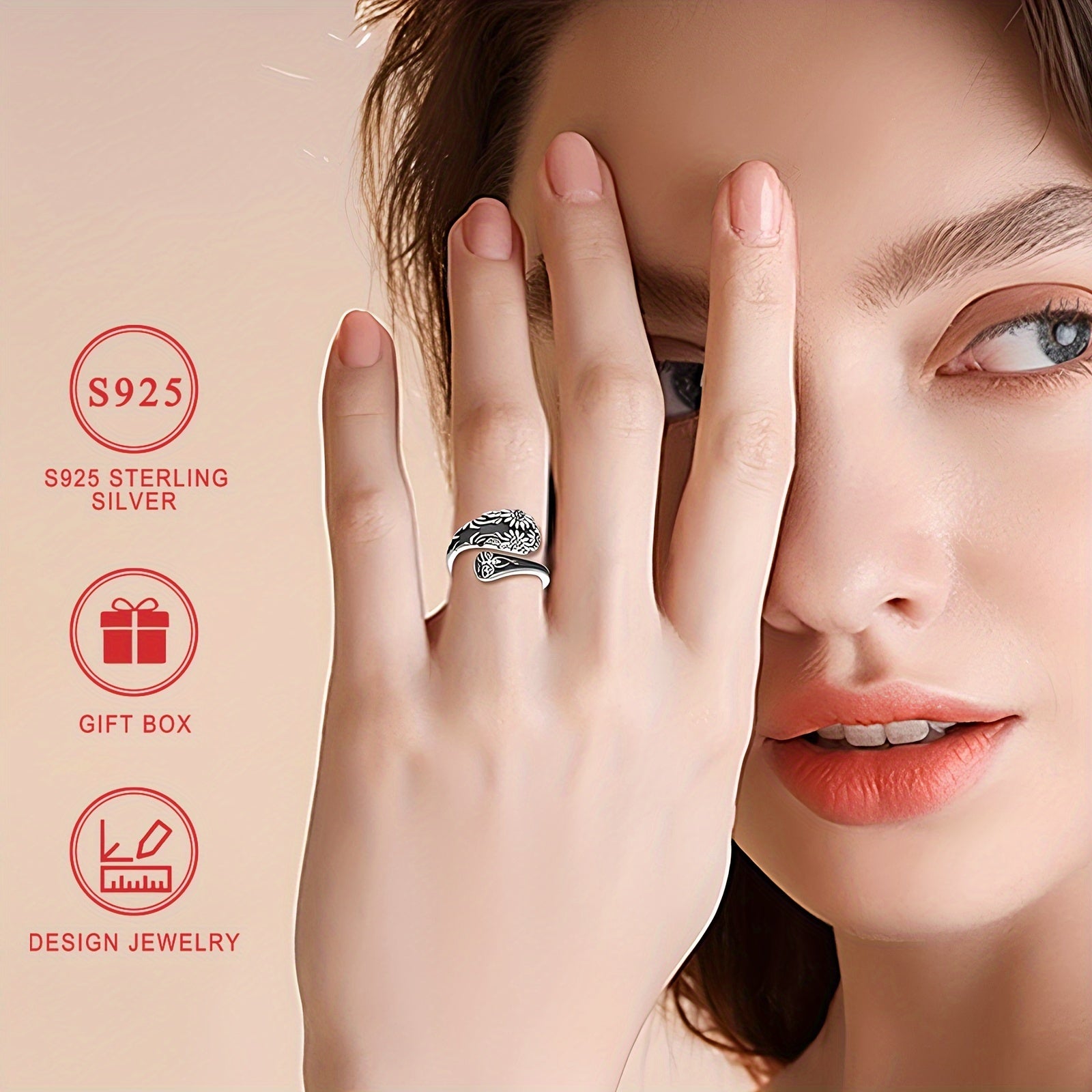 Elegant S925 pure silvery spoon ring with a sunflower, daisy, and butterfly design. Perfect for any occasion.