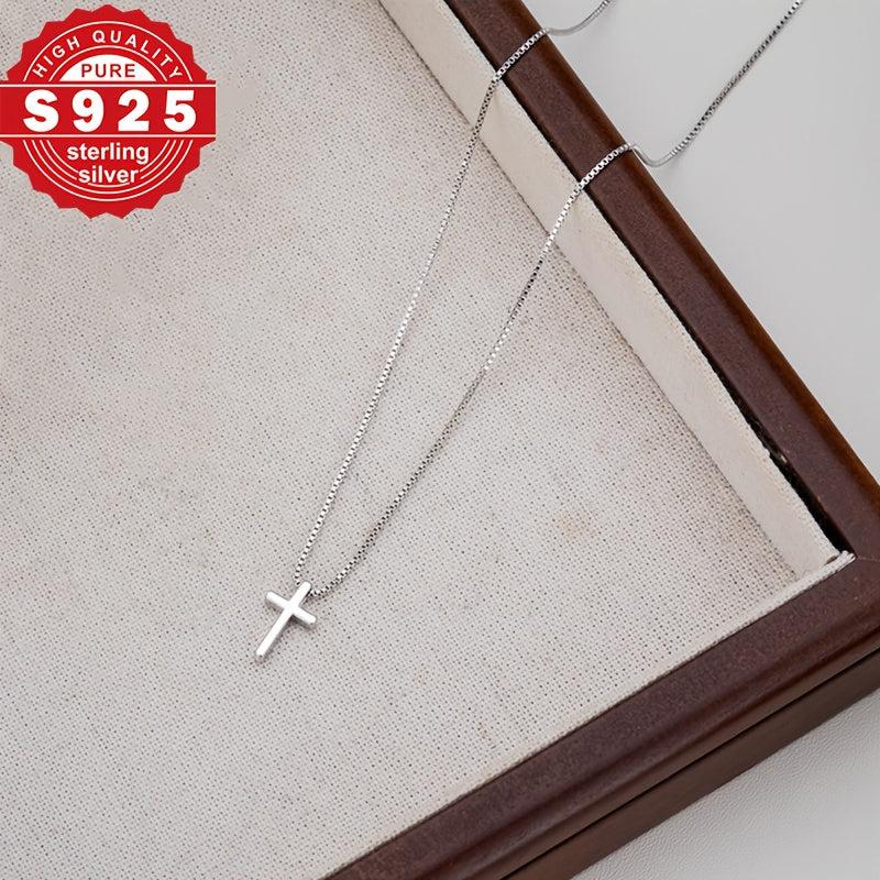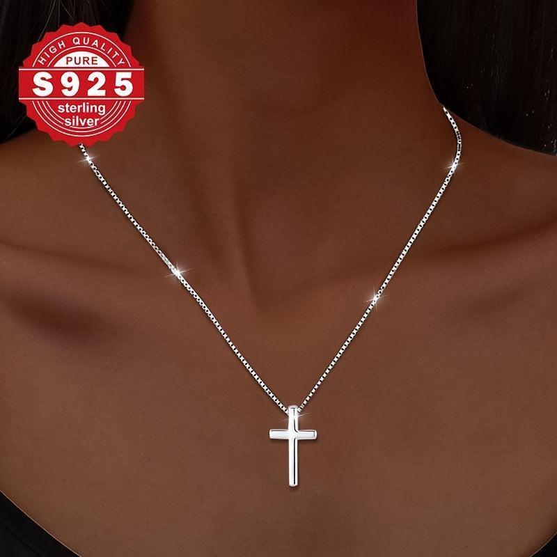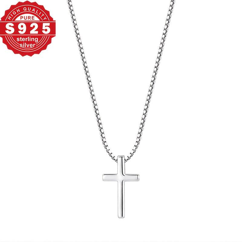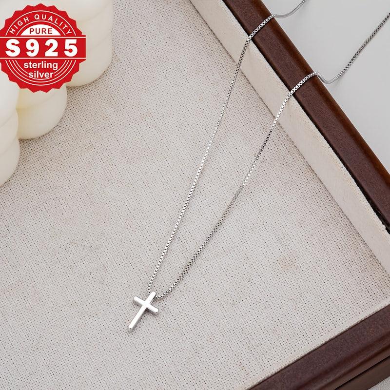 This S925 pure silvery necklace features a cross box chain design that is perfect for daily wear. It is low allergy, making it suitable for sensitive skin.