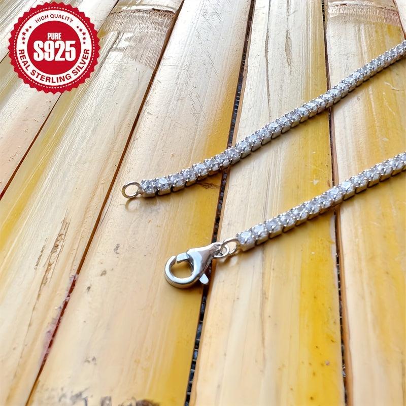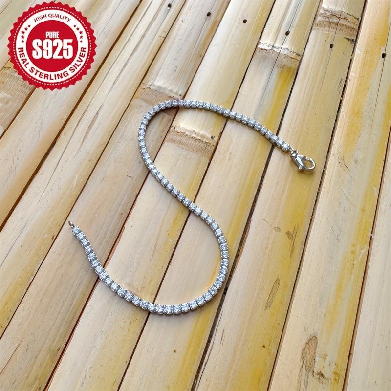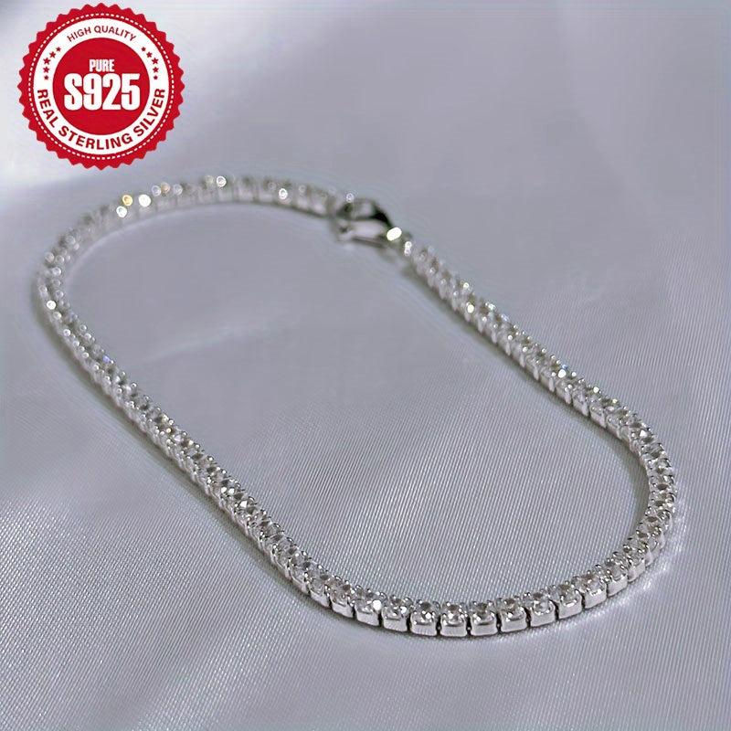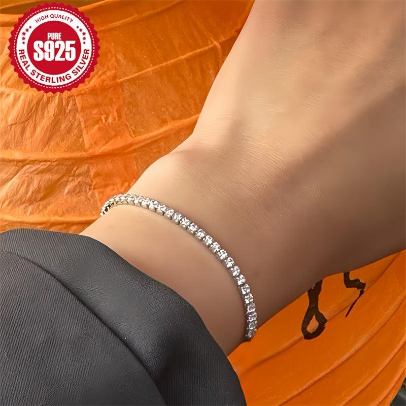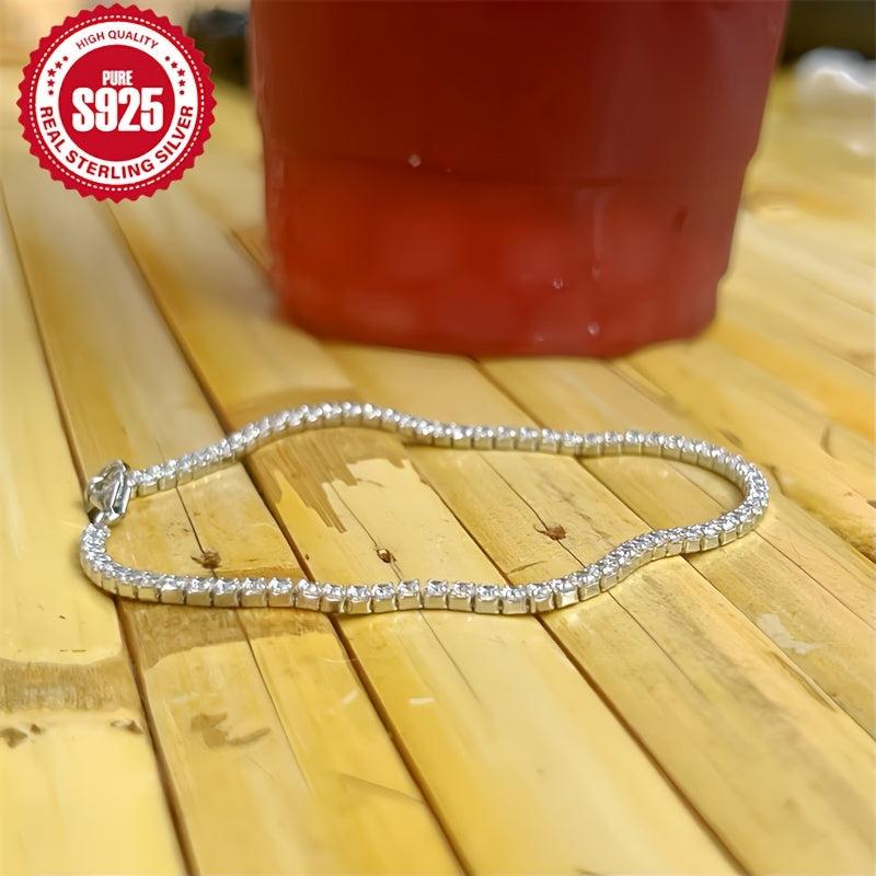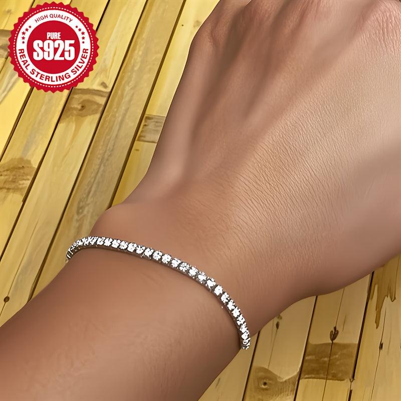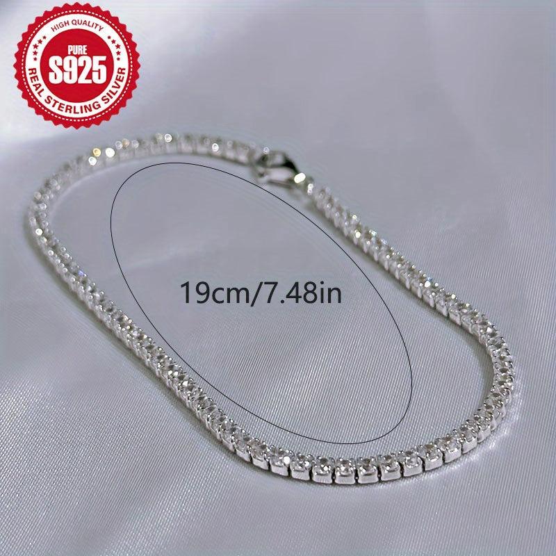 Add a touch of glamour to your everyday look with this stunning tennis chain bracelet. Crafted from S925 pure silvery with synthetic zirconia, this bracelet is perfect for engagement or everyday wear. It also makes a lovely jewelry gift for women.