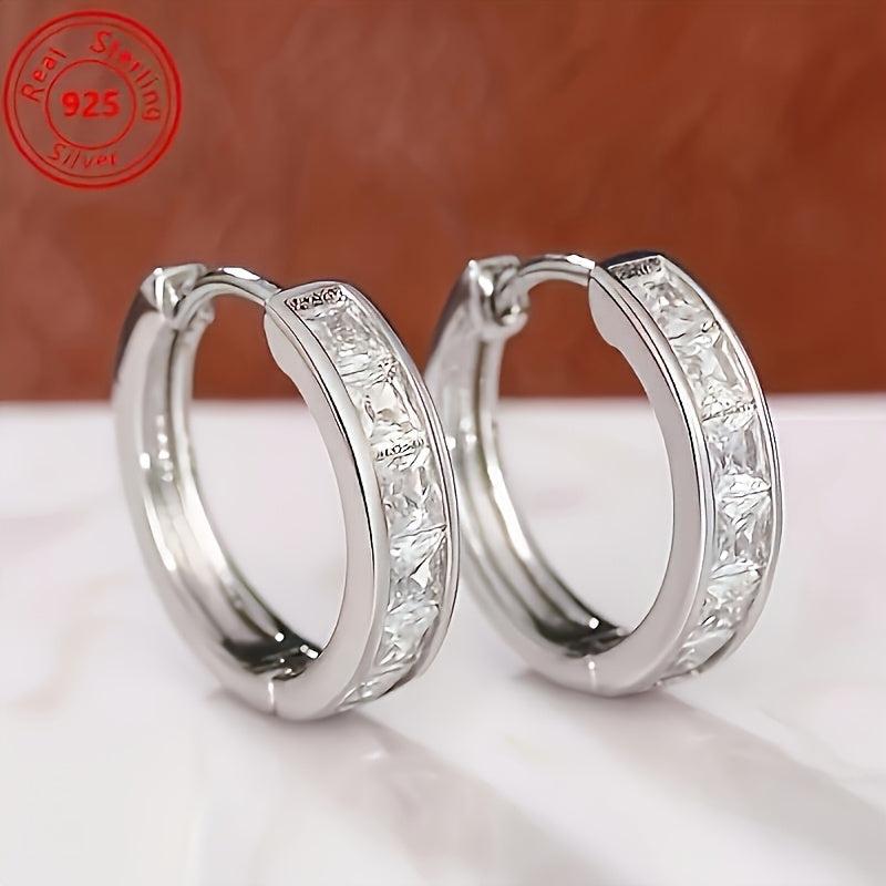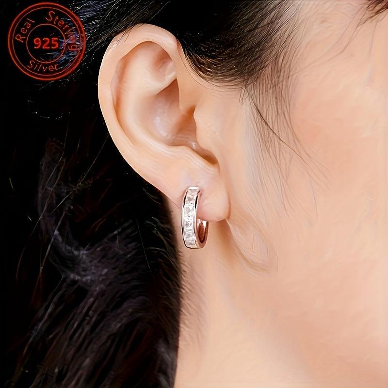 These S925 pure silvery earrings with sparkling zirconium are perfect for daily wear. Lightweight and versatile, they complement any outfit.