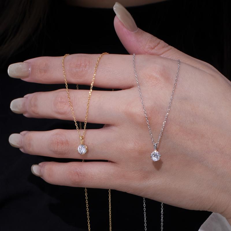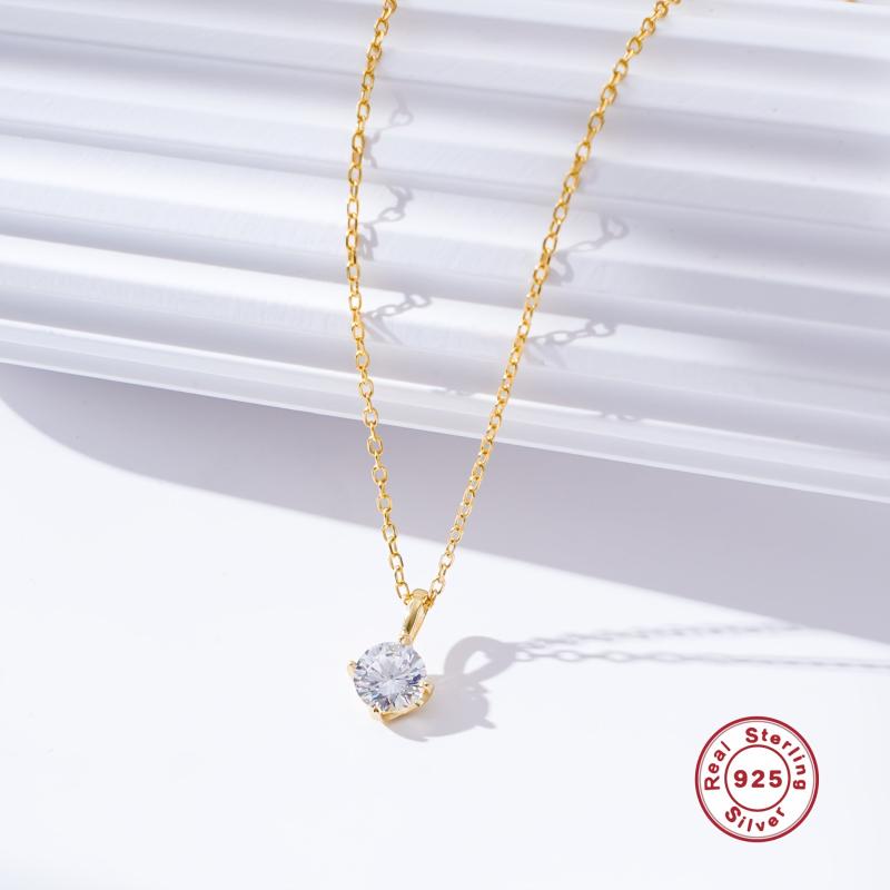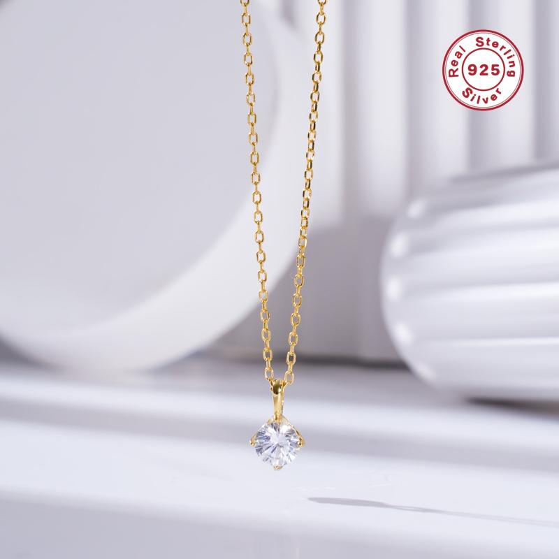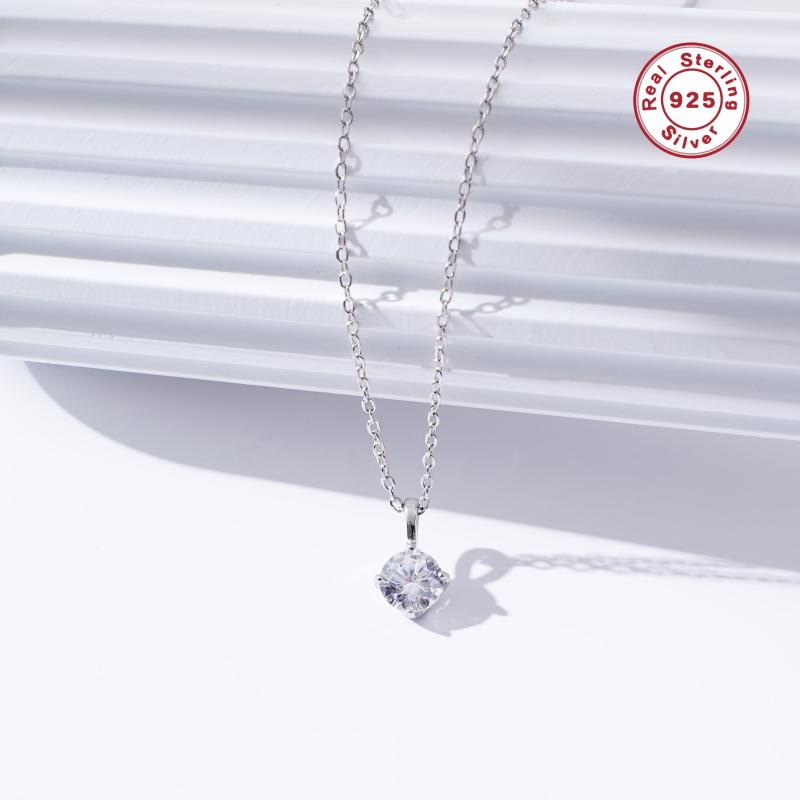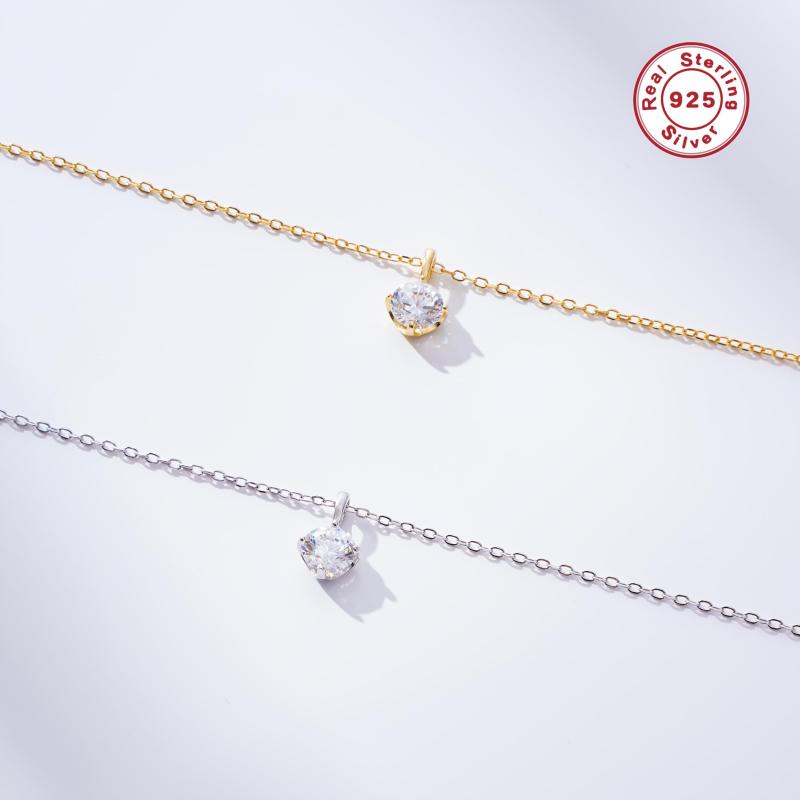 This elegant single moissanite necklace features a S925 silvery chain with a dazzling moissanite pendant. It is stylish, fashionable, and suitable for weddings.