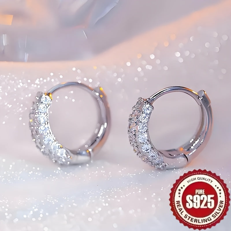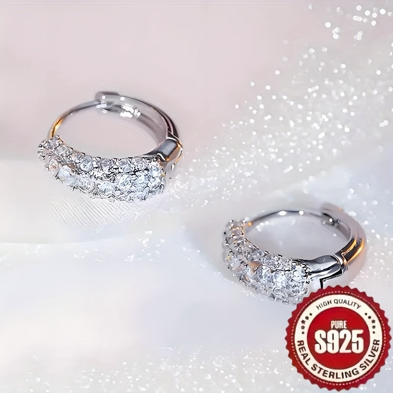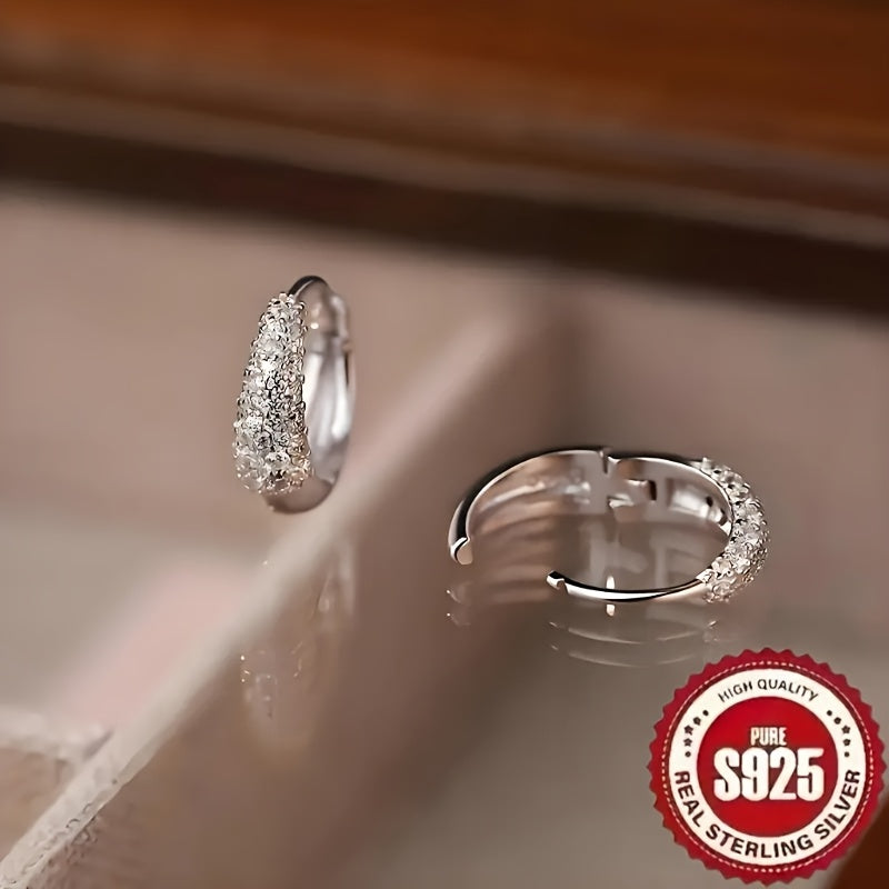 These high-end S925 silvery earrings feature a sparkling oval geometric design with synthetic zirconia inlay. Perfect for everyday wear, they add a touch of elegance to any outfit.