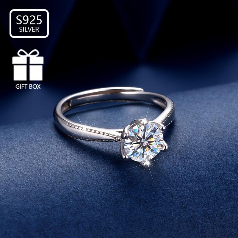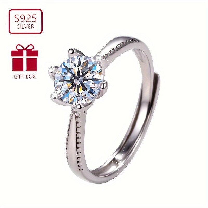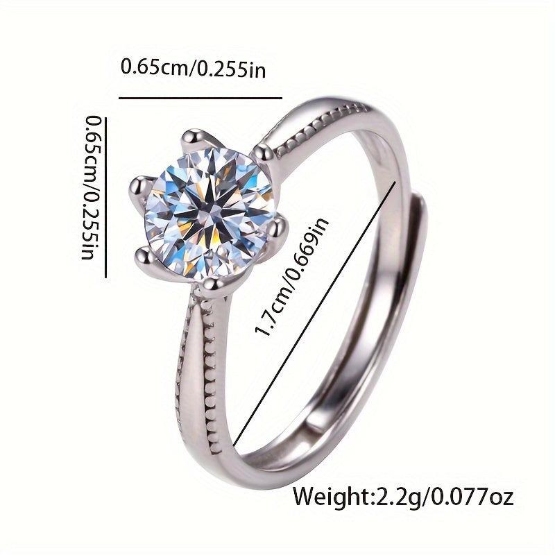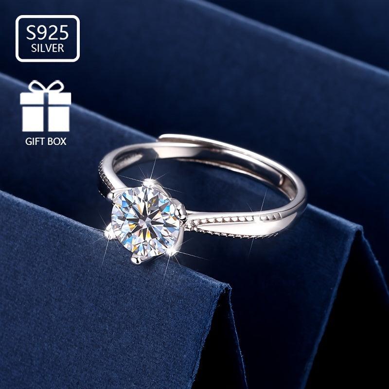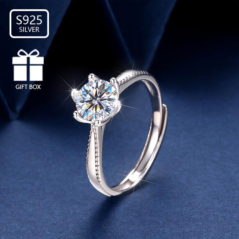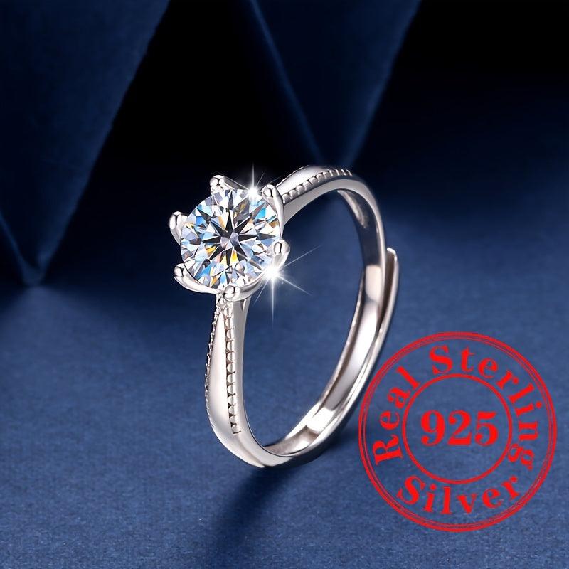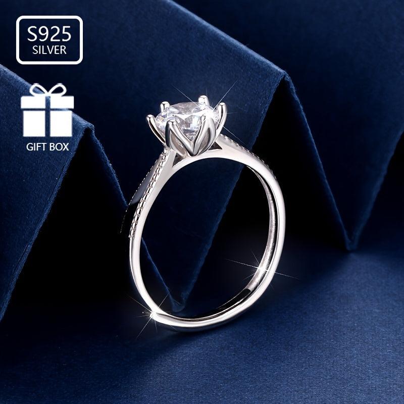 This beautiful ring is made from pure silvery S925 and features sparkling zirconia inlay with six claws. Perfect as an engagement ring or gift for your fiancee.