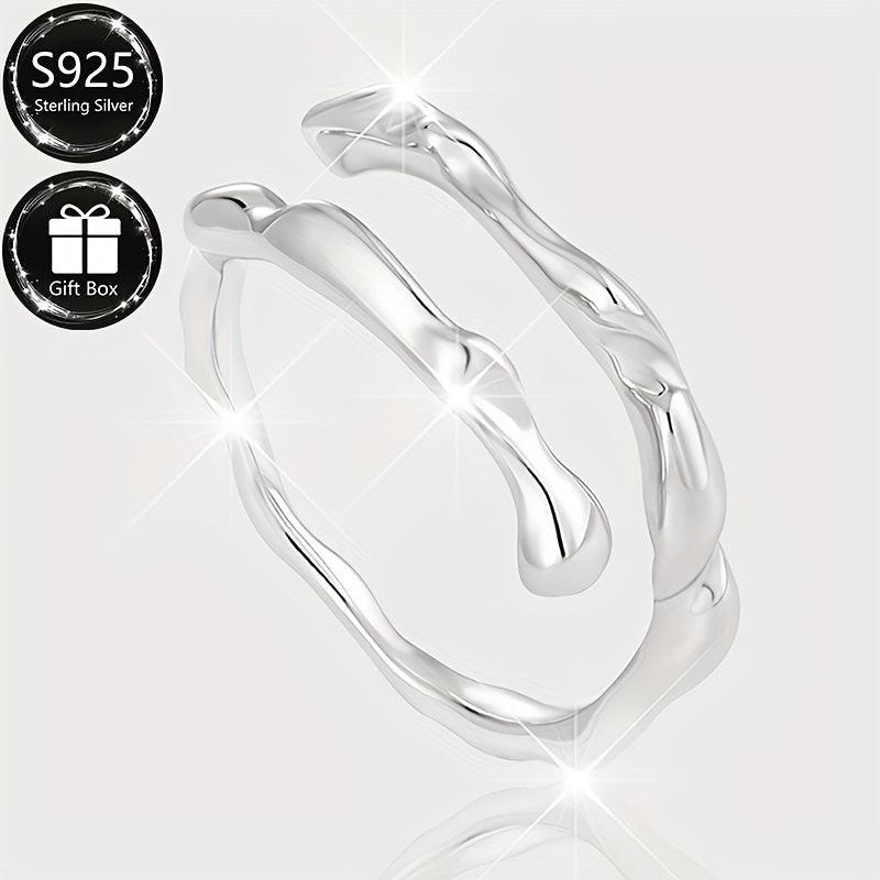 This S925 sterling silver adjustable ring features an irregular double layer design, making it perfect for daily wear or parties. It's a versatile piece that can be worn all season long.