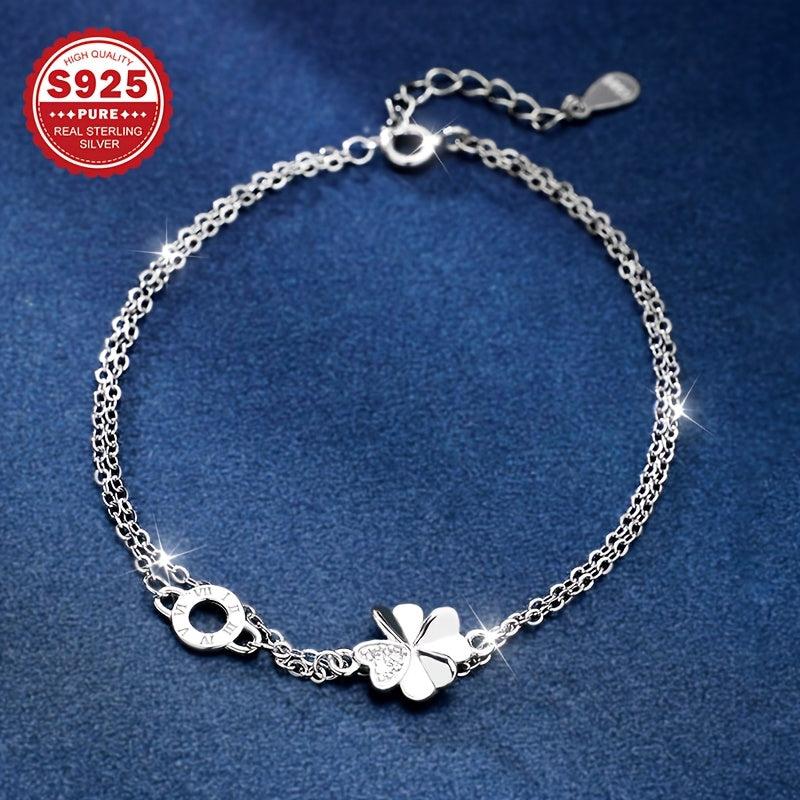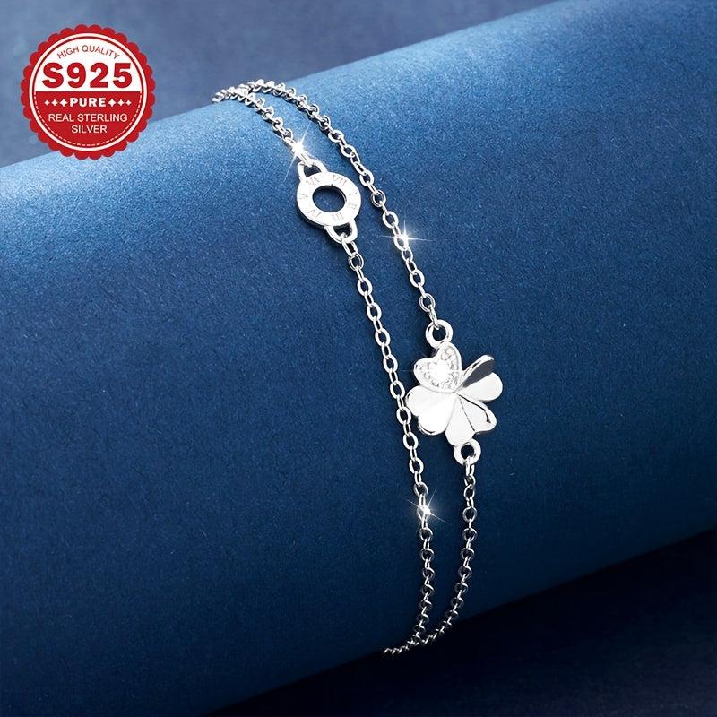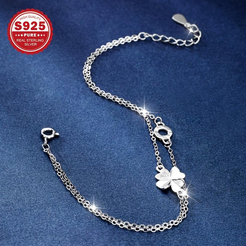 This ankle bracelet for women is crafted from genuine S925 sterling silver and adorned with four delicate floral round rings. It exudes a sense of grace and is suitable for daily wear or beach outings.
