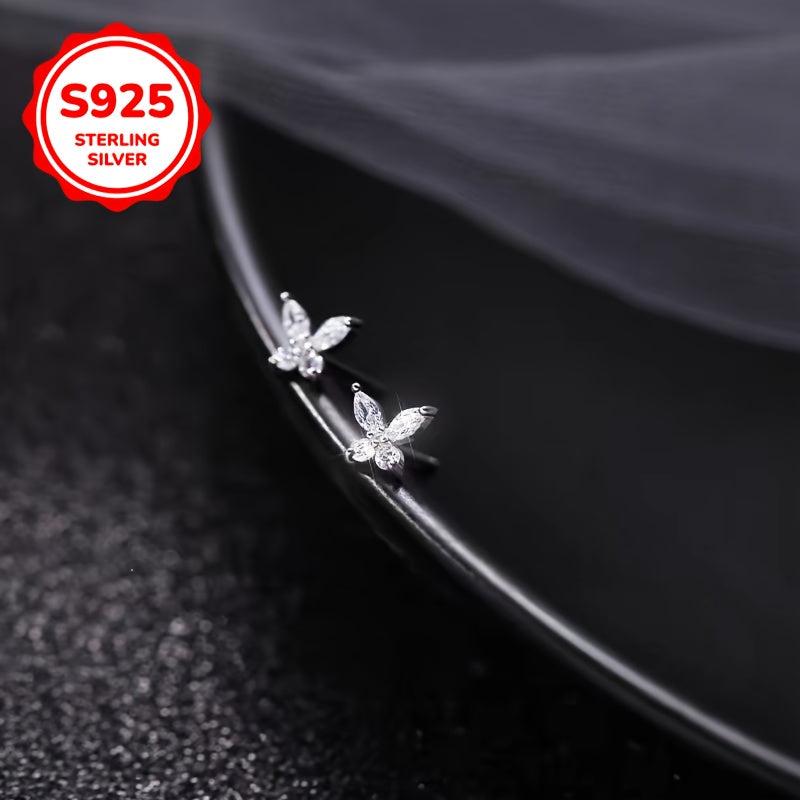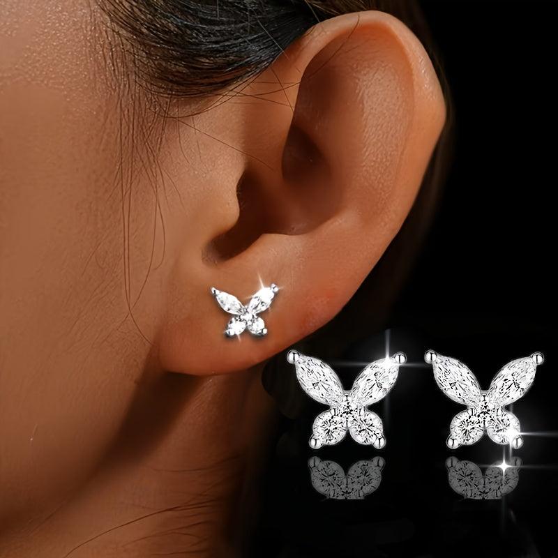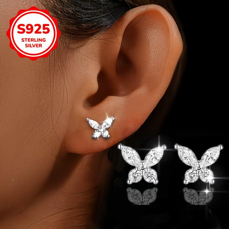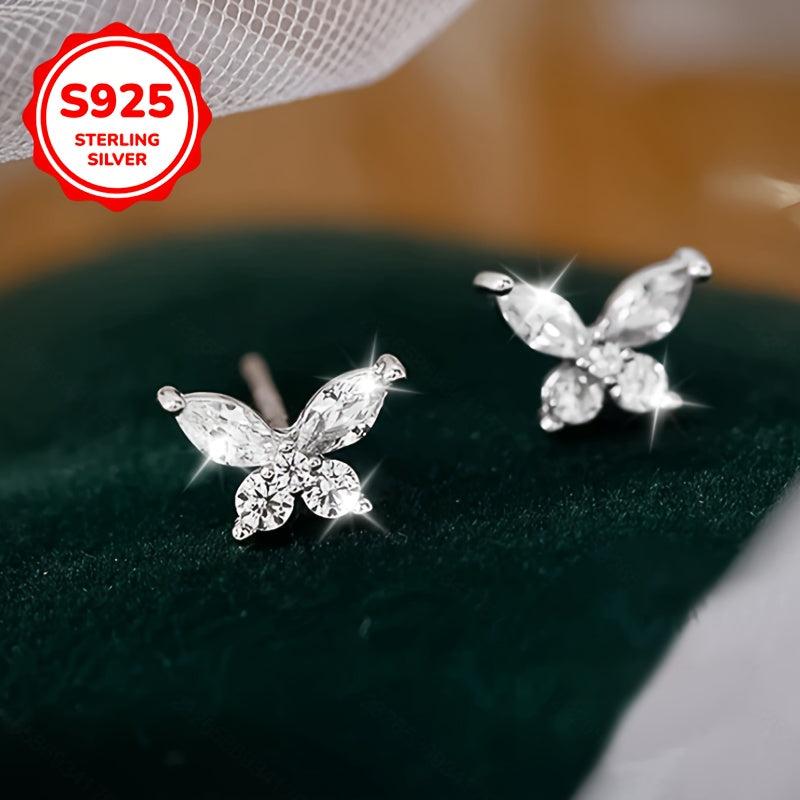 Elevate your style with these high-end S925 sterling silver earrings featuring synthetic cubic zirconia butterflies. Versatile and elegant, perfect for any occasion.
