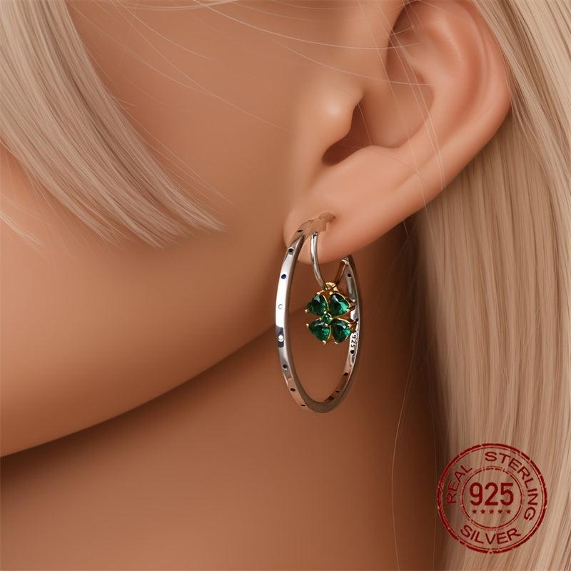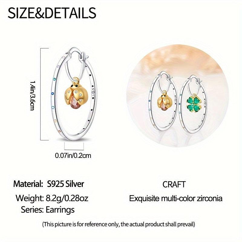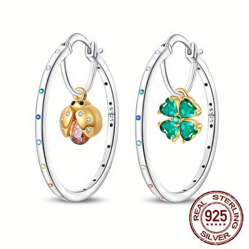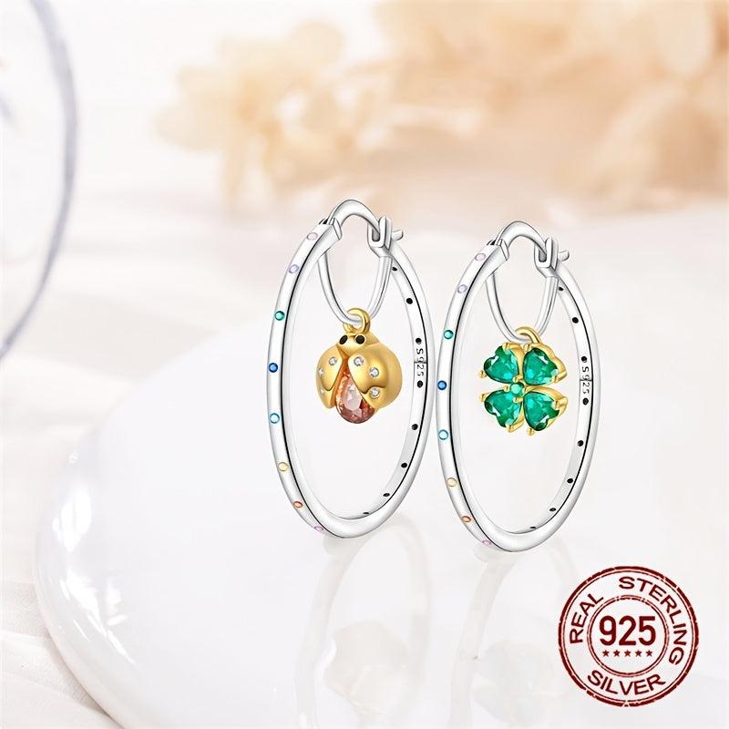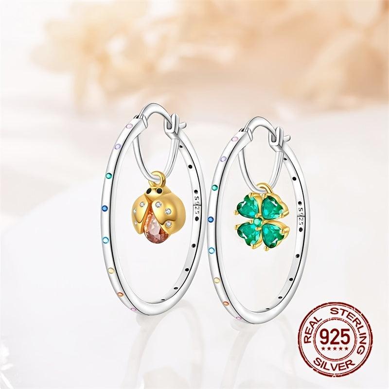 Delightful pair of S925 sterling silver earrings featuring a four-leaf clover and ladybug design. Comes with sexy double-layer earrings. Perfect jewelry gift for her.