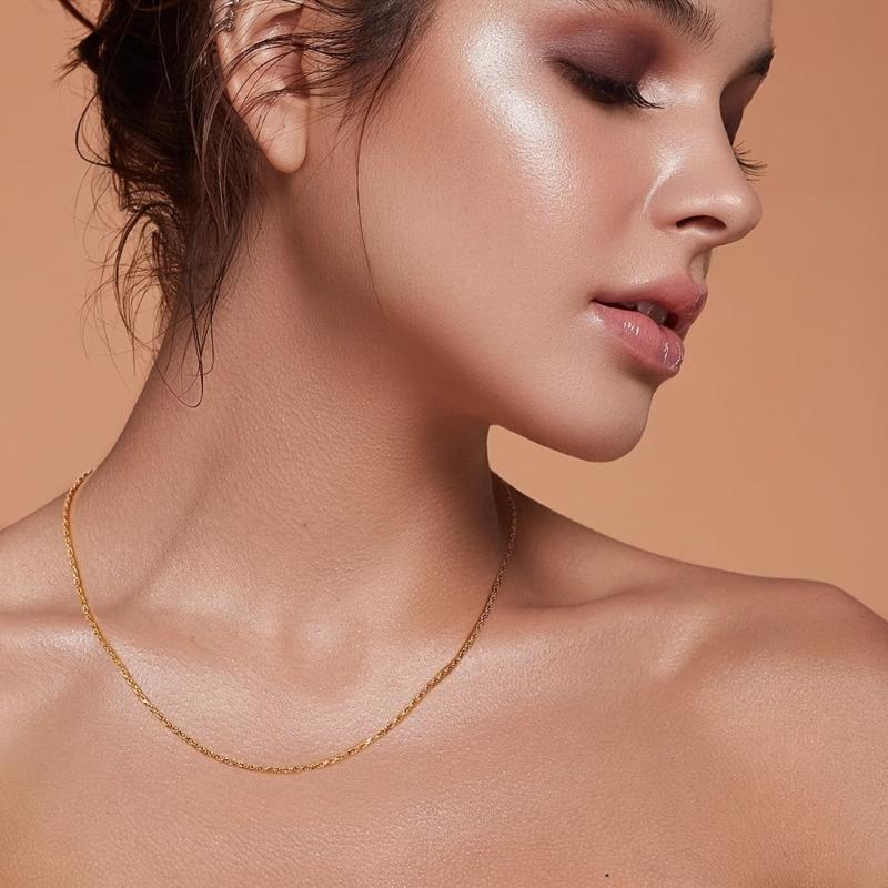 This stunning 1.5mm thick chain features a golden and dazzling luster, perfect for adding a touch of elegance to any outfit.