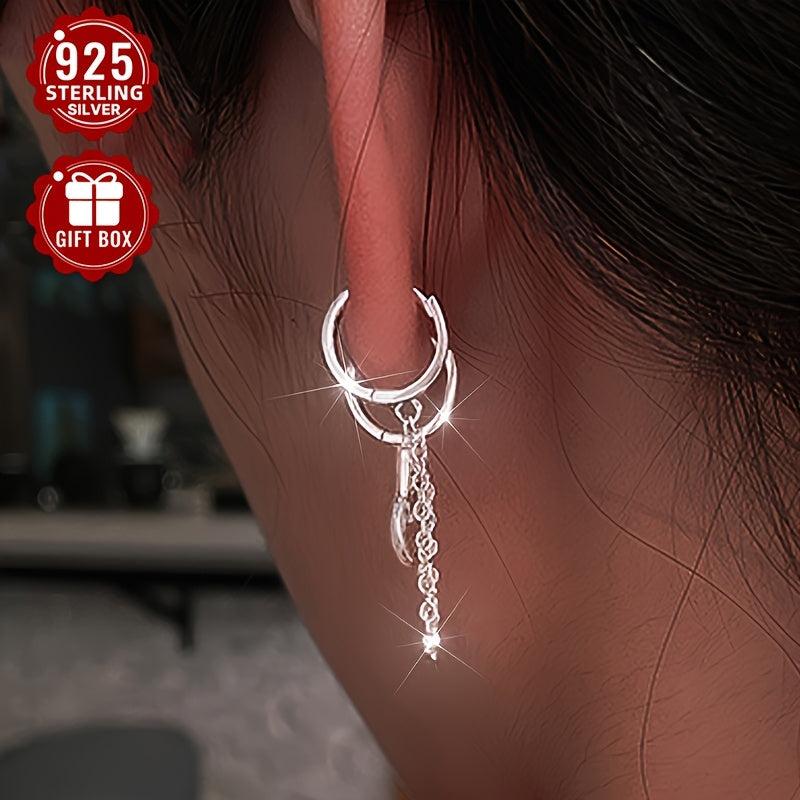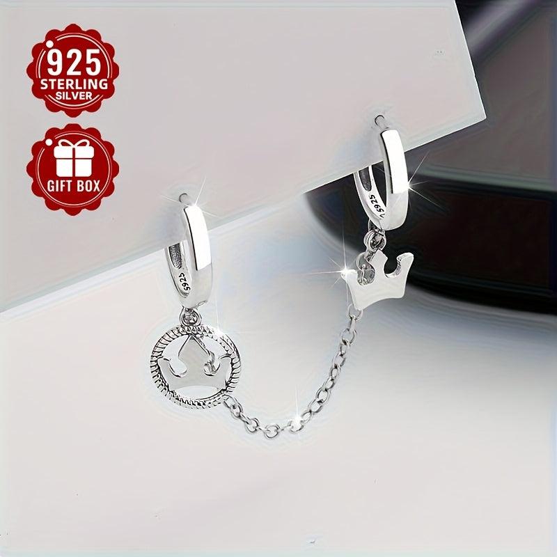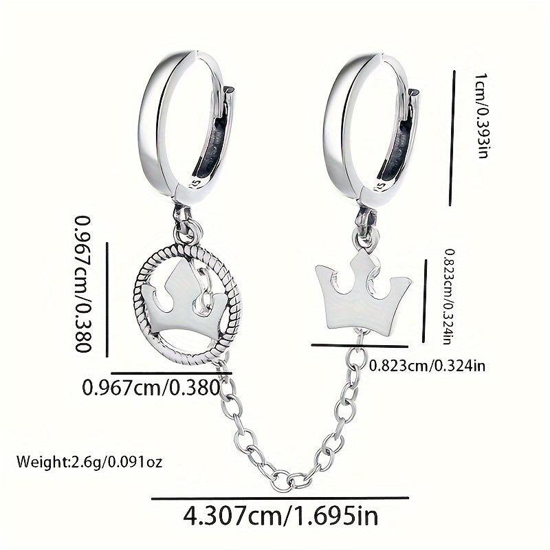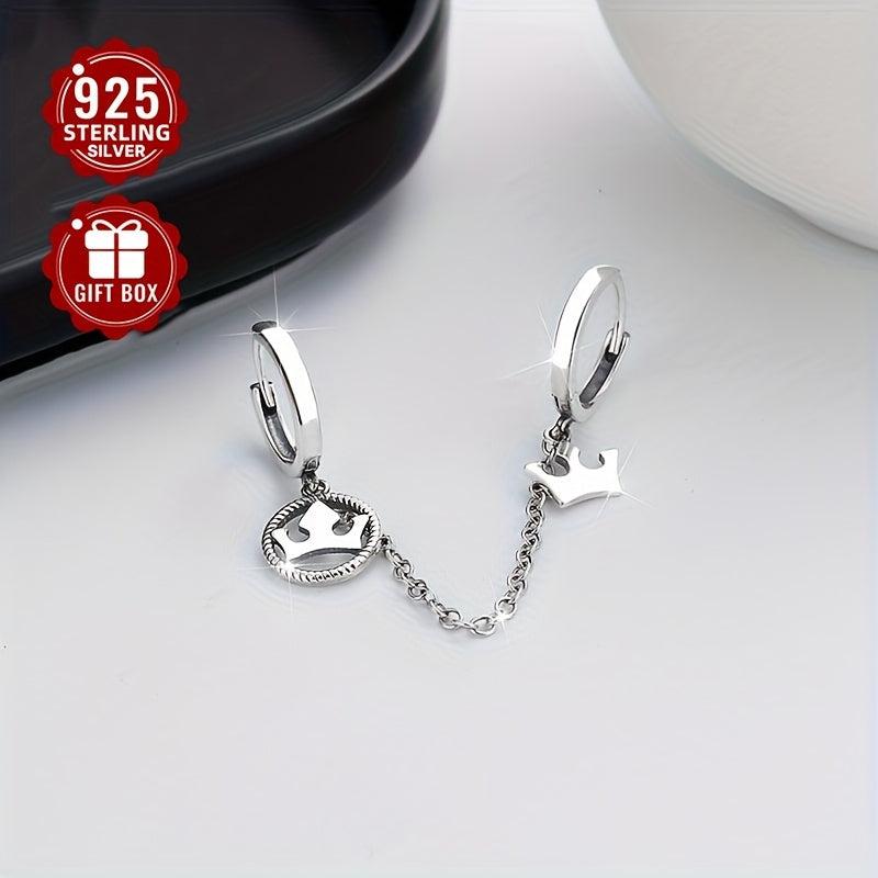 Chic and stylish S925 sterling silver ring-shaped earrings with intricate crown tassel design. Ideal for girls with low allergy concerns. Perfect gift for a special occasion.