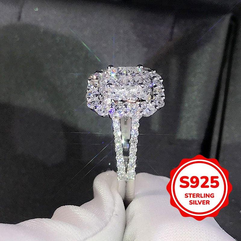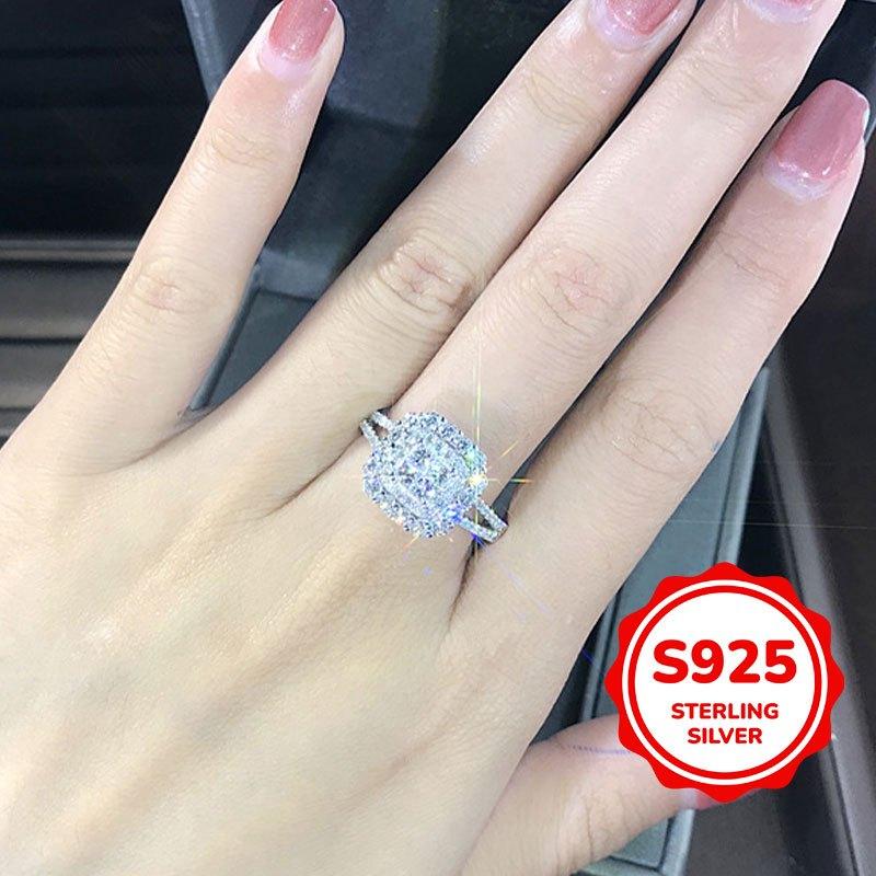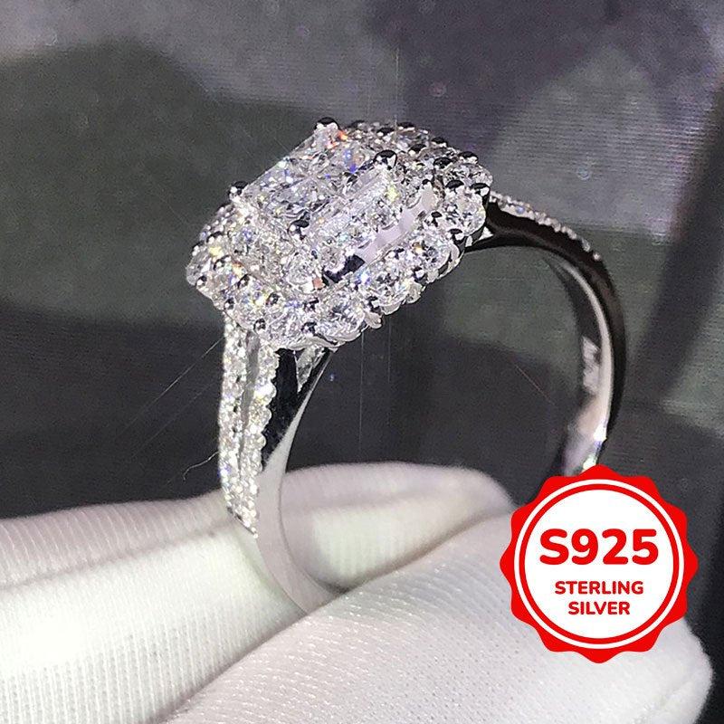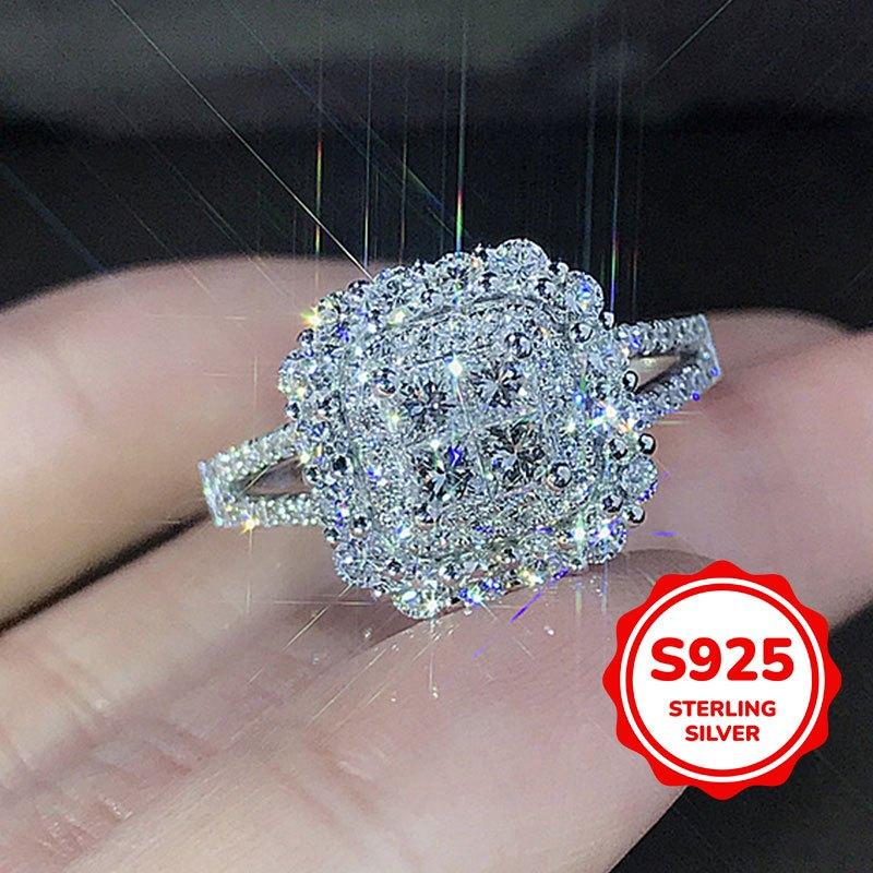 Elegant engagement ring with cubic zirconia stone and silver band, perfect for weddings and parties.