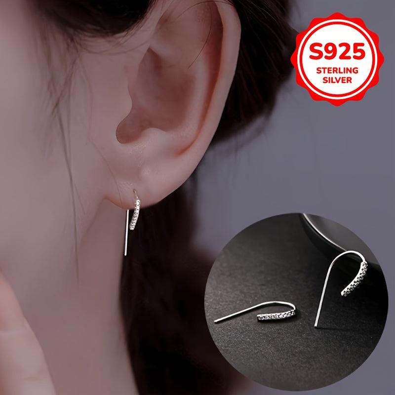 Elegant long silver earrings with synthetic cubic zirconia in teardrop shape. Hypoallergenic and stylish for any occasion.