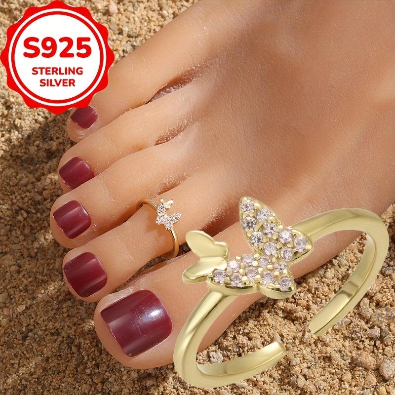 This beautiful S925 sterling silver foot ring features a double butterfly design that is perfect for the beach and vacations. It is hypoallergenic and lightweight at only 0.61g.