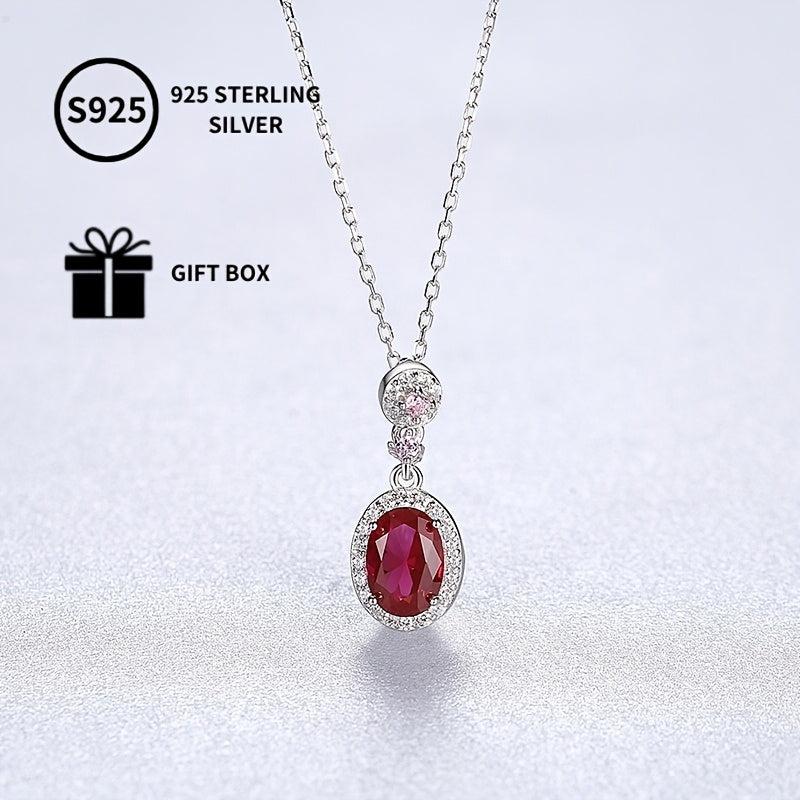 This exquisite S925 Sterling Silver necklace features an egg inset pendant, making it a noble accessory perfect for Christmas or anniversary gifts. Ideal for senior party wear.