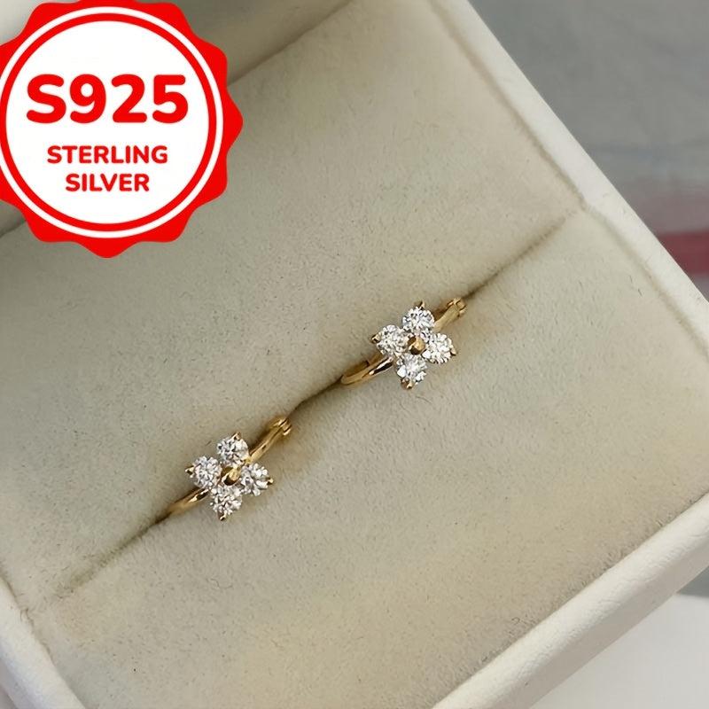 These elegant earrings feature a 4 petal leaf design with sparkling cubic zirconia stones. They are lightweight and perfect for gifting on special occasions like banquets and Valentine's Day.