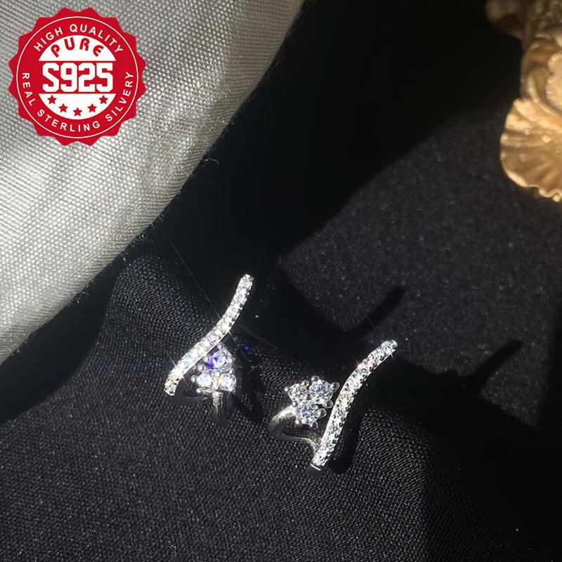 These elegant S925 sterling silver earrings feature synthetic zirconia for a touch of bling. Perfect for banquets, parties, or everyday wear. Low-key yet stylish.
