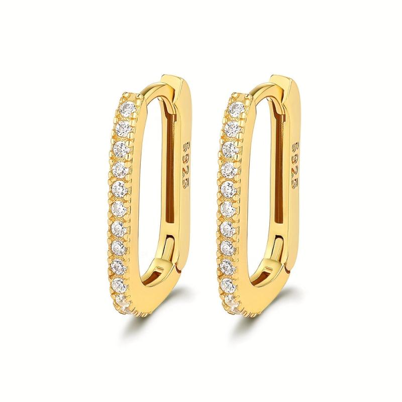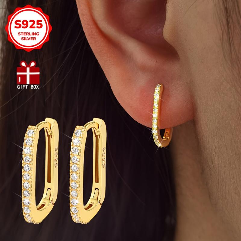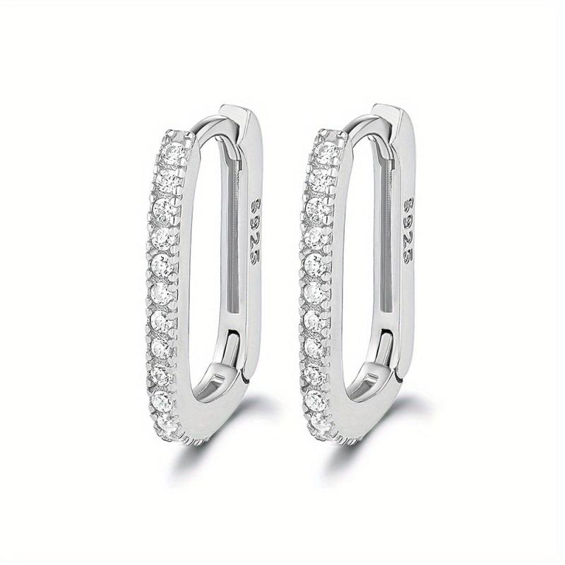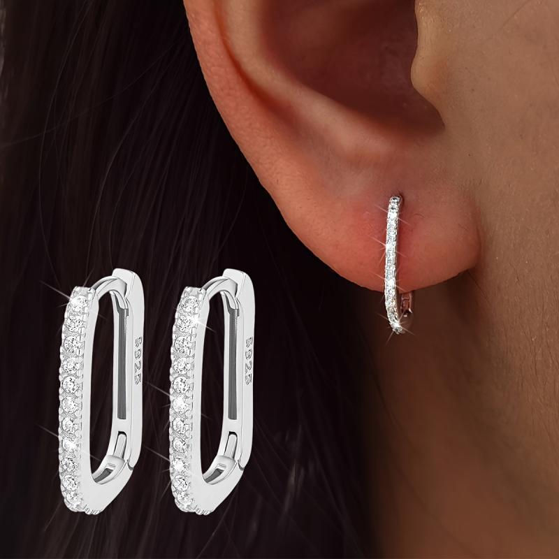 Stay trendy with these hypoallergenic oval earrings made from S925 sterling silver and adorned with synthetic zirconia. Perfect for a minimalist yet fashionable look.