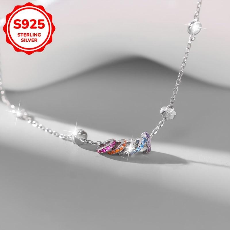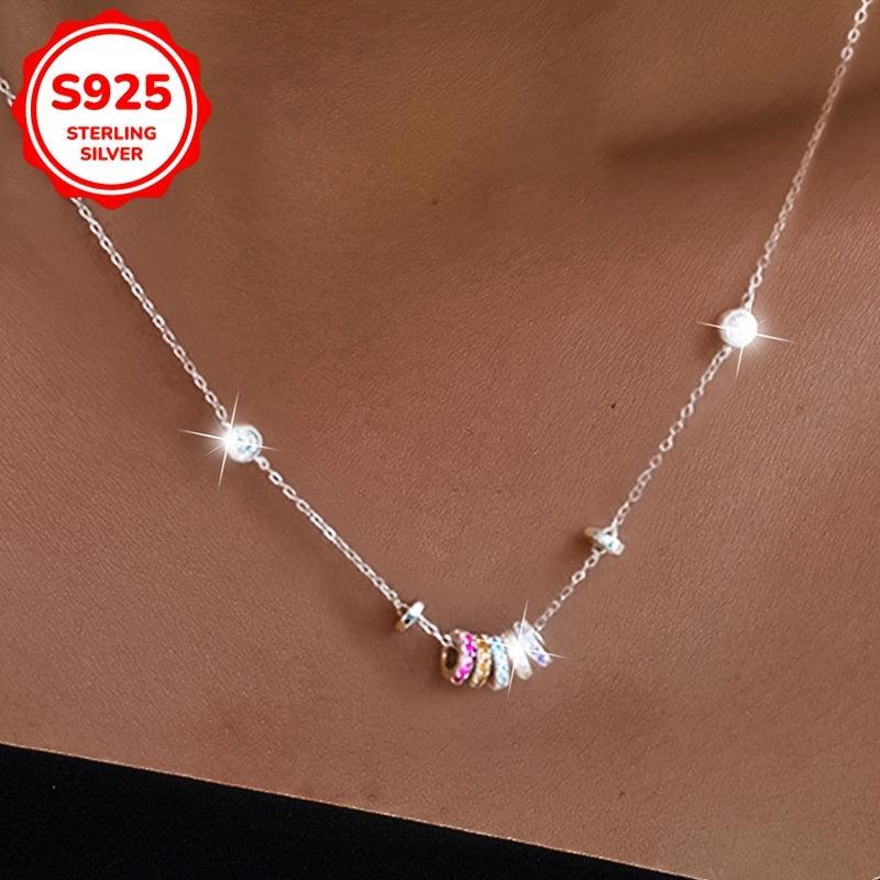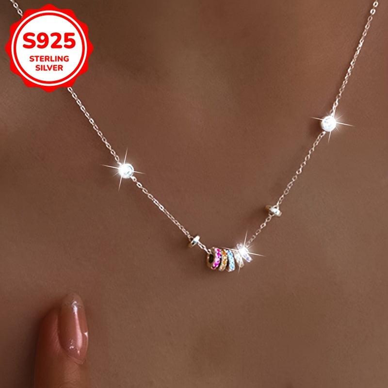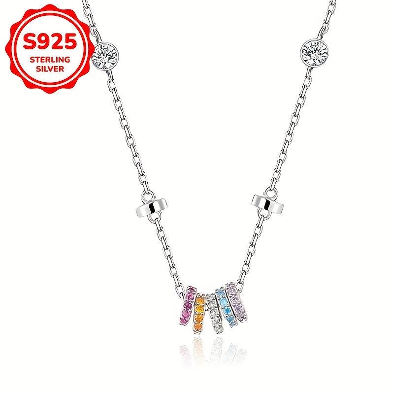 This stunning pendant necklace features colorful rhinestones set in high-quality S925 sterling silver. It is a versatile accessory perfect for daily wear and parties, making it an ideal gift for women's anniversaries.