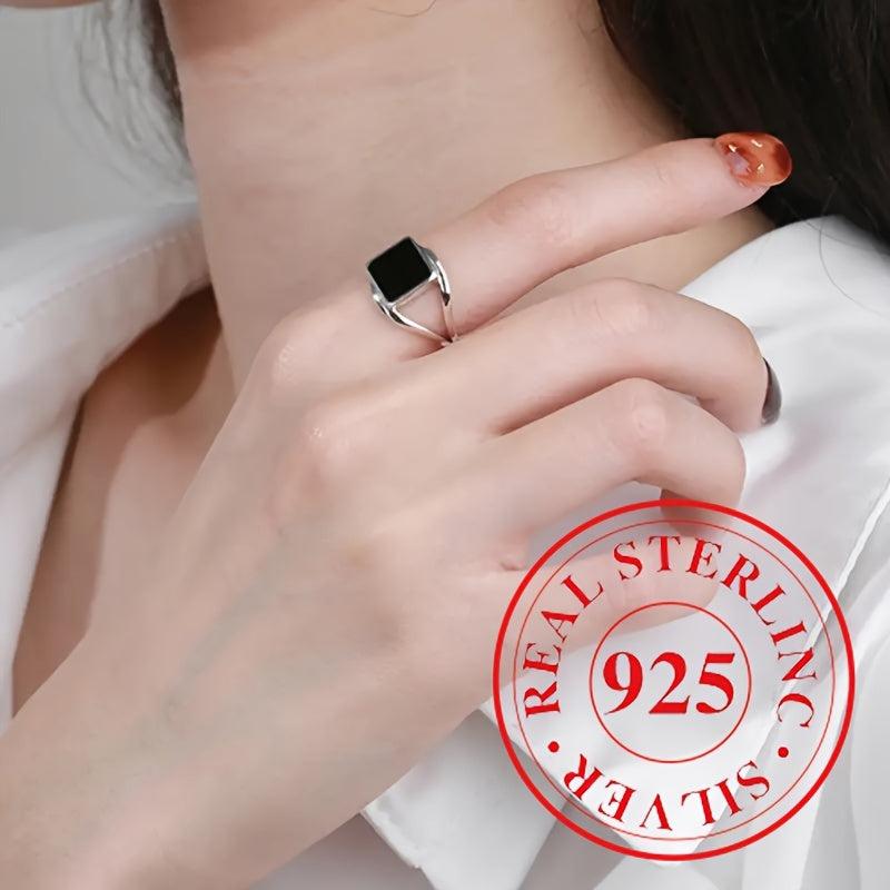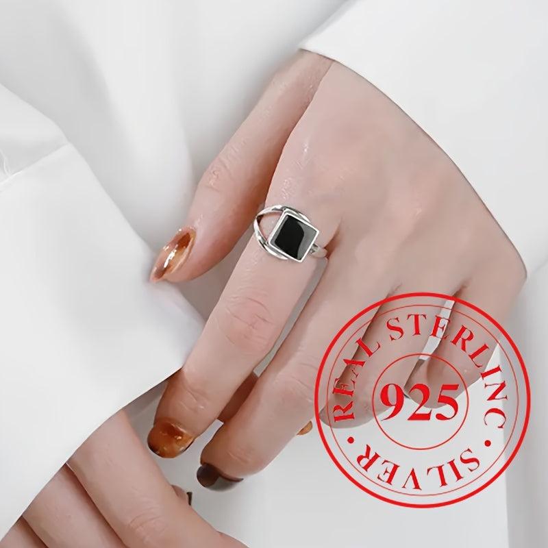 Add a touch of elegance to your look with this sterling silver square ring. Perfect for parties or daily wear, this adjustable ring is a must-have accessory.