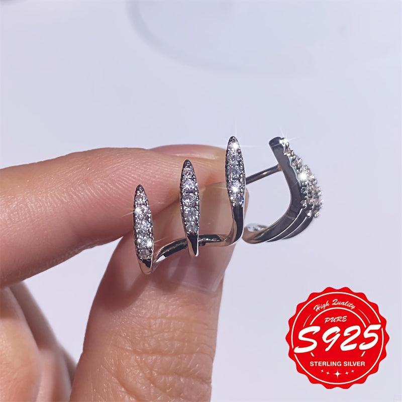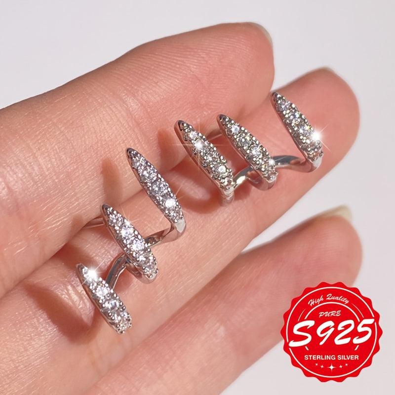 These elegant S925 sterling silver earrings feature a unique three-prong design. Perfect for daily wear, music festivals, and any occasion.