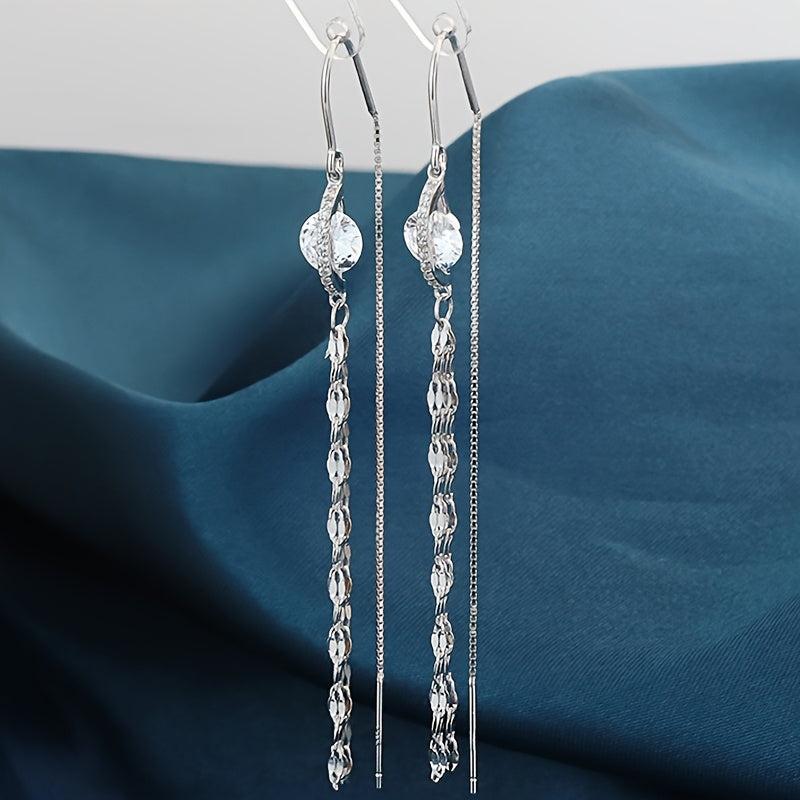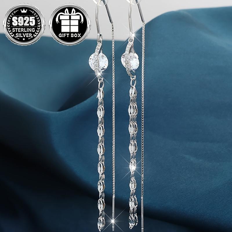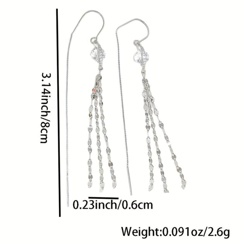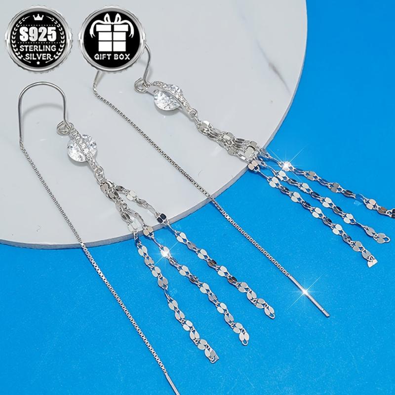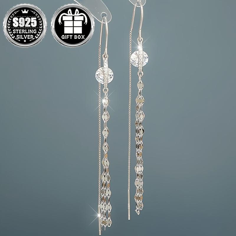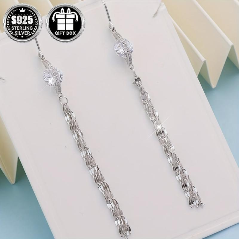 Add a touch of sparkle to your look with these stunning S925 sterling silver tassel earrings featuring cubic zirconia. Perfect for everyday wear or as a thoughtful gift for a loved one.