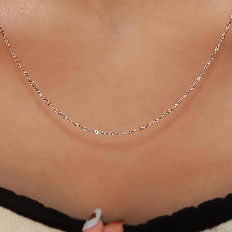 Elegant S925 sterling silver necklace with a minimalist wave design. Perfect for daily wear.
