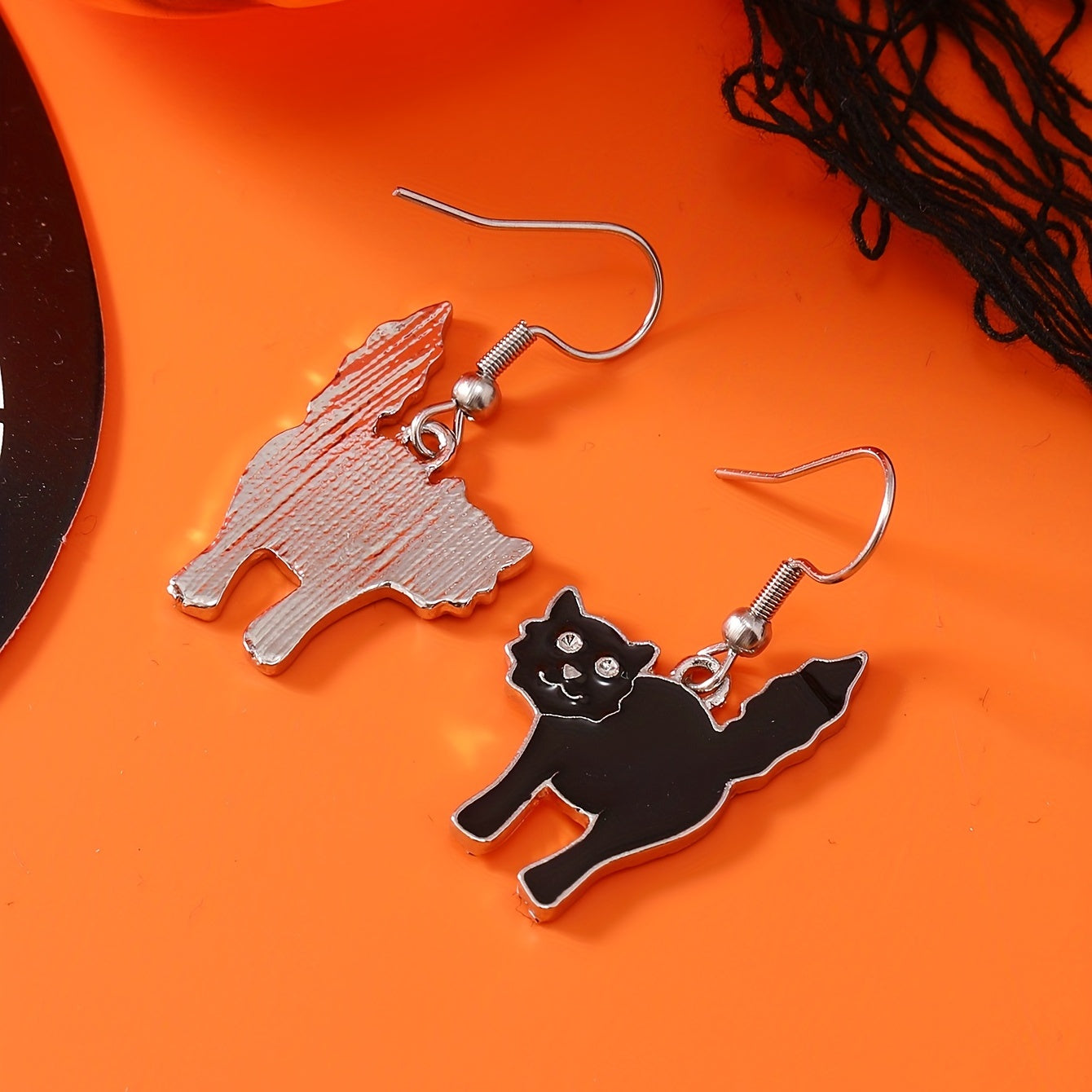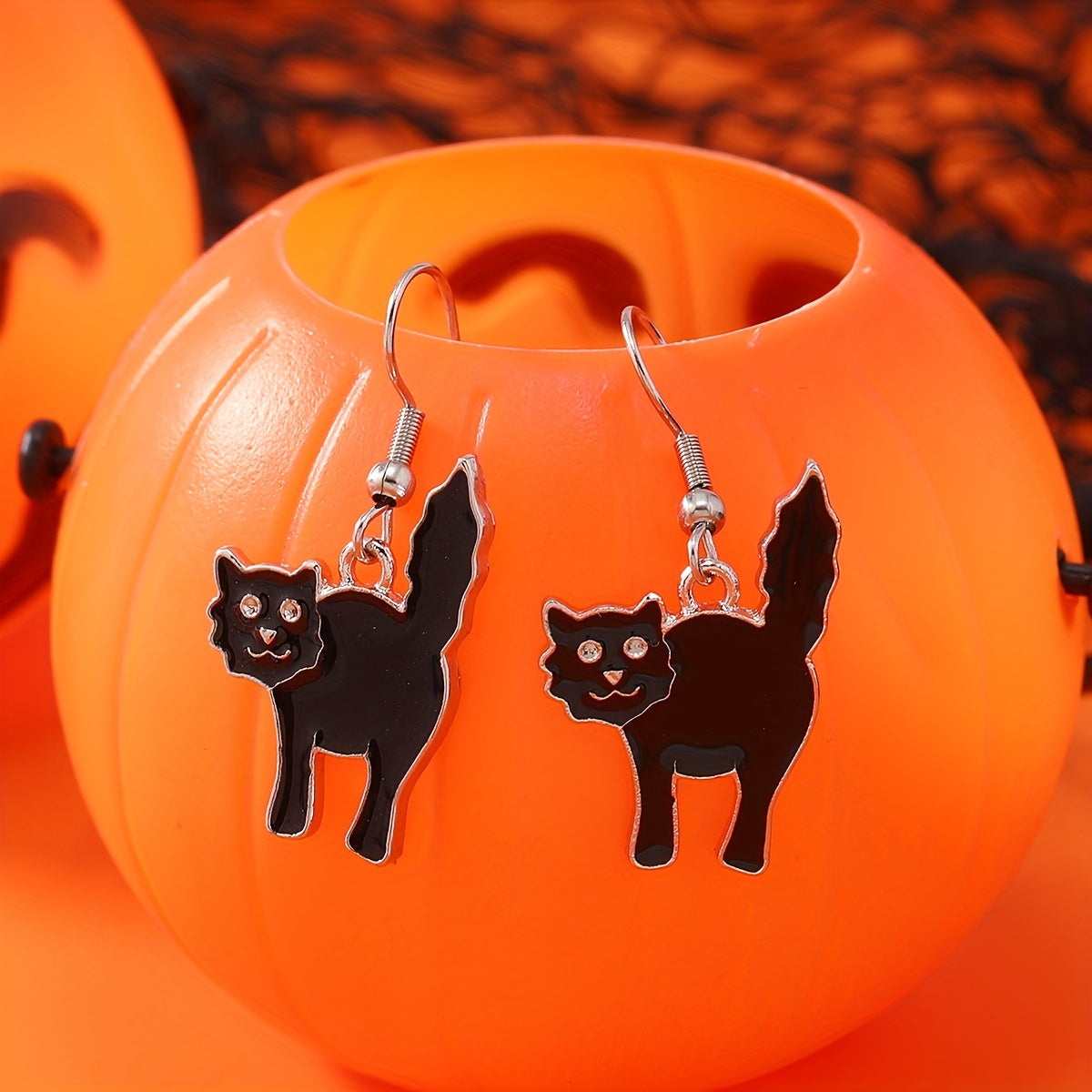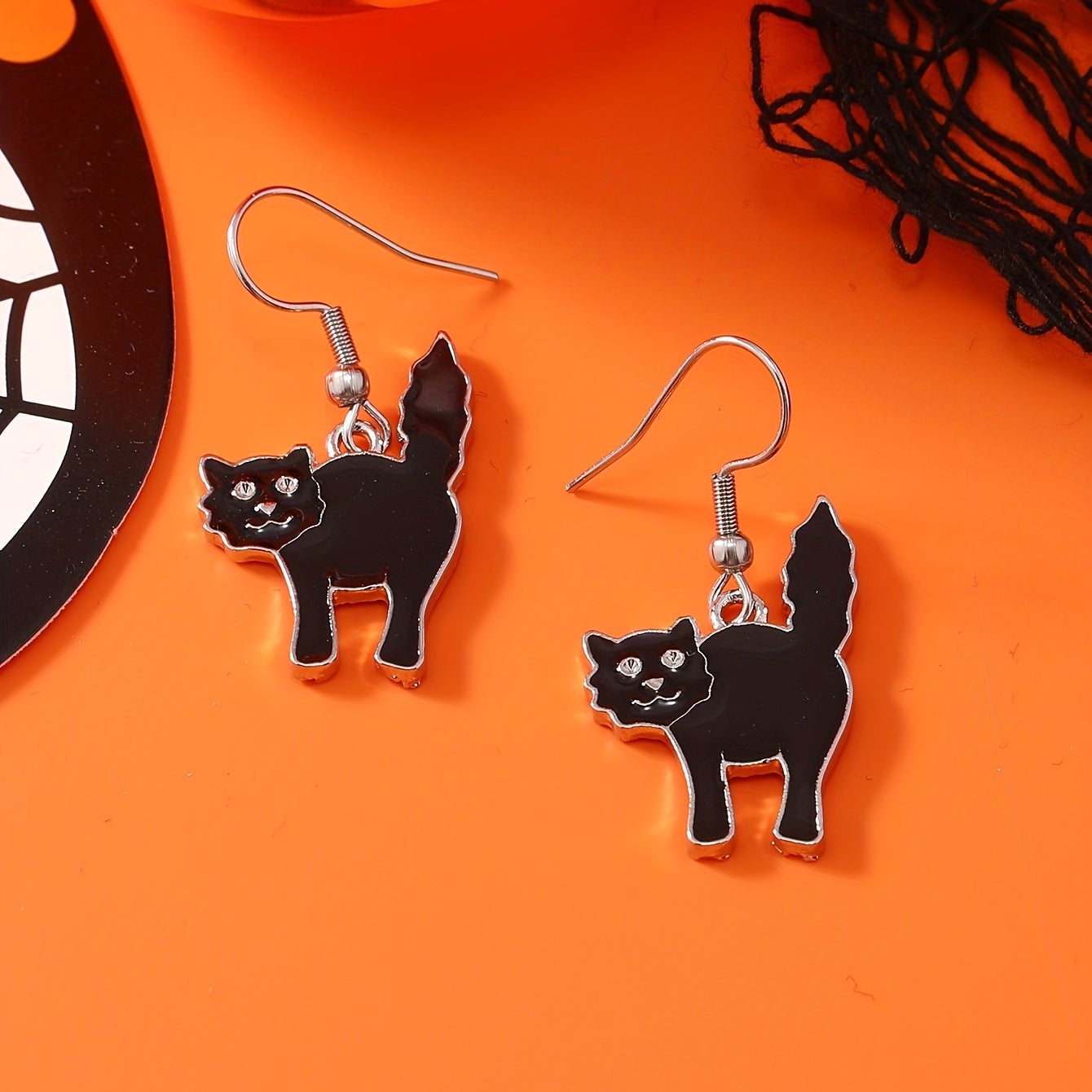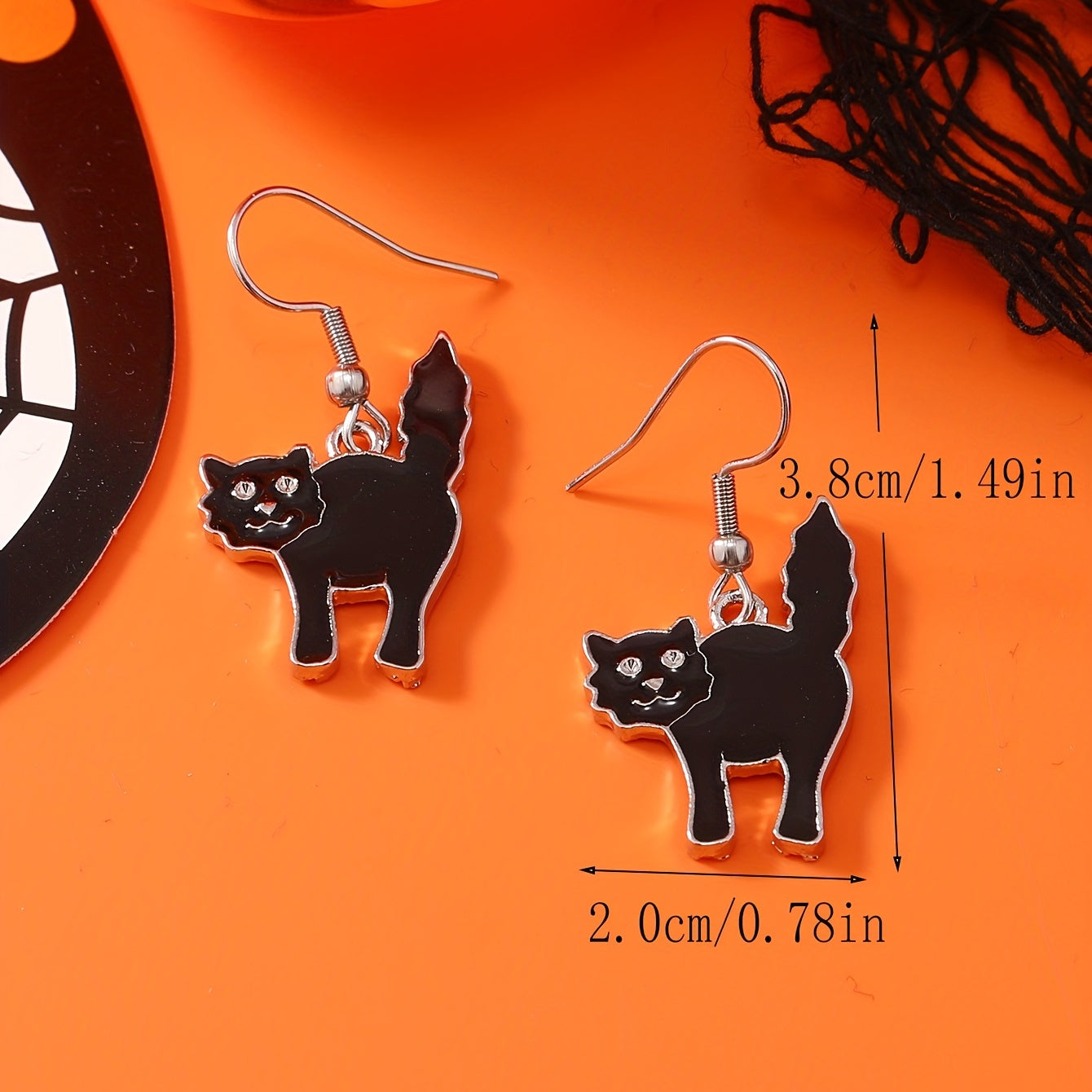 These creative dangle earrings feature a scared cat design, perfect for Halloween parties. Made of zinc alloy, they are a unique and stylish accessory.