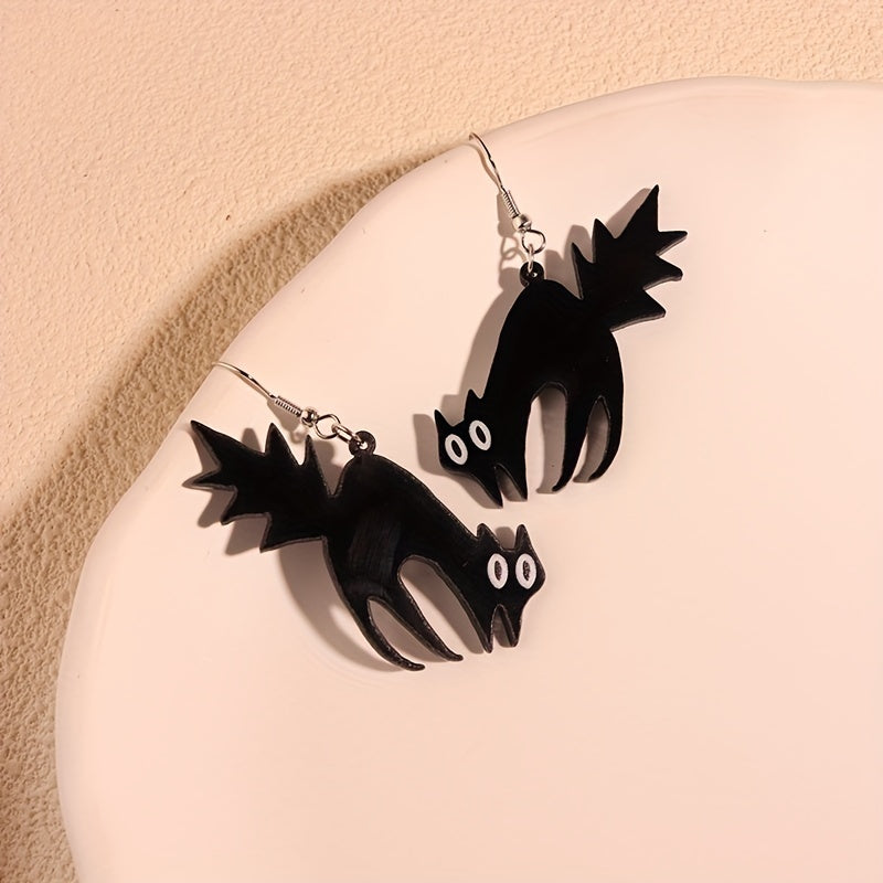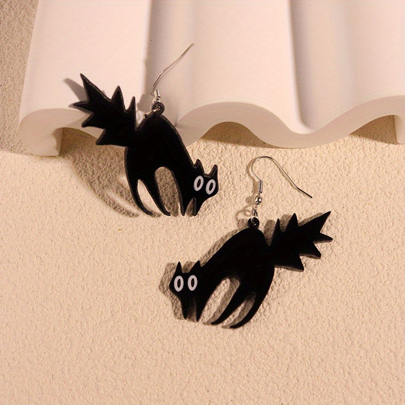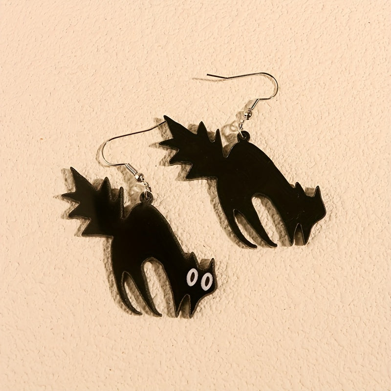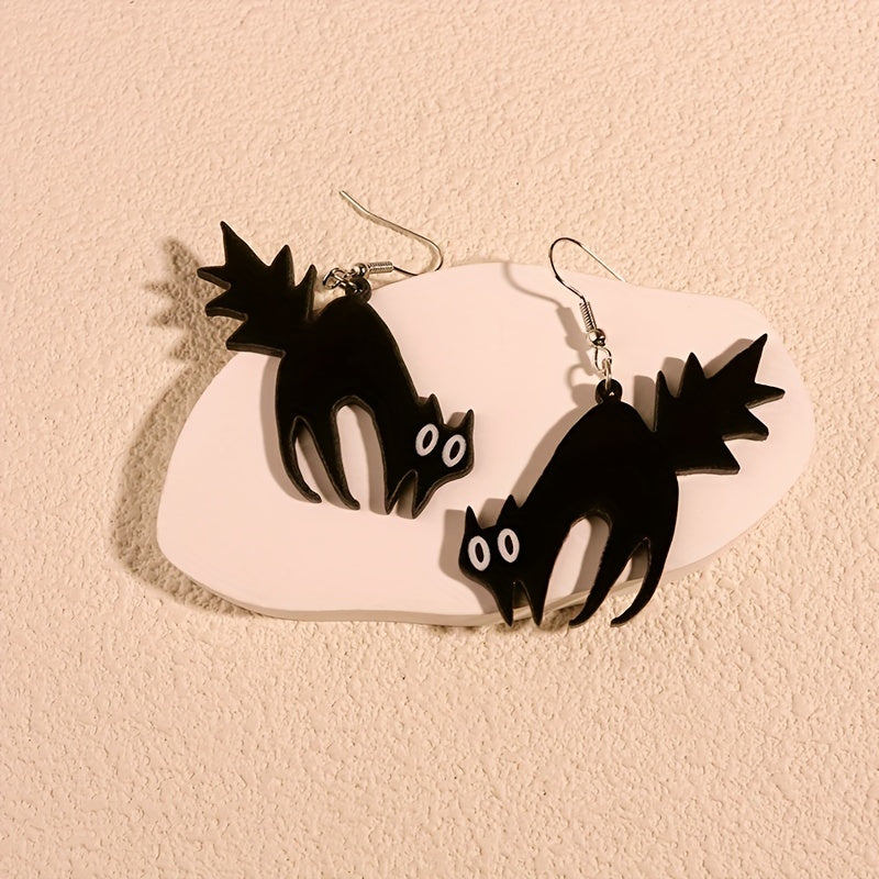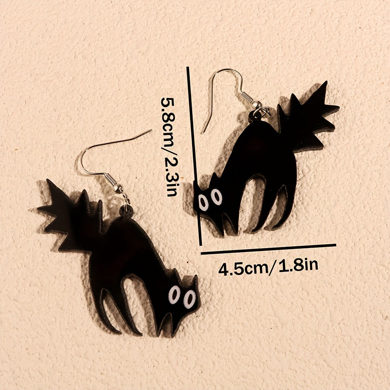 These funny dangle earrings feature a scared cat design, perfect for cat lovers. Made of high-quality acrylic material, they make a unique and fun accessory.