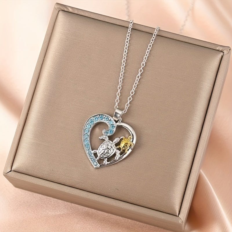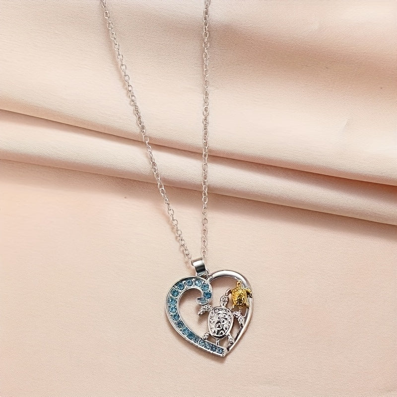 This stylish pendant necklace features a sea turtle design, making it a creative and trendy addition to any outfit. Perfect for men and women, this mother and child jewelry piece is fashionable and eye-catching.